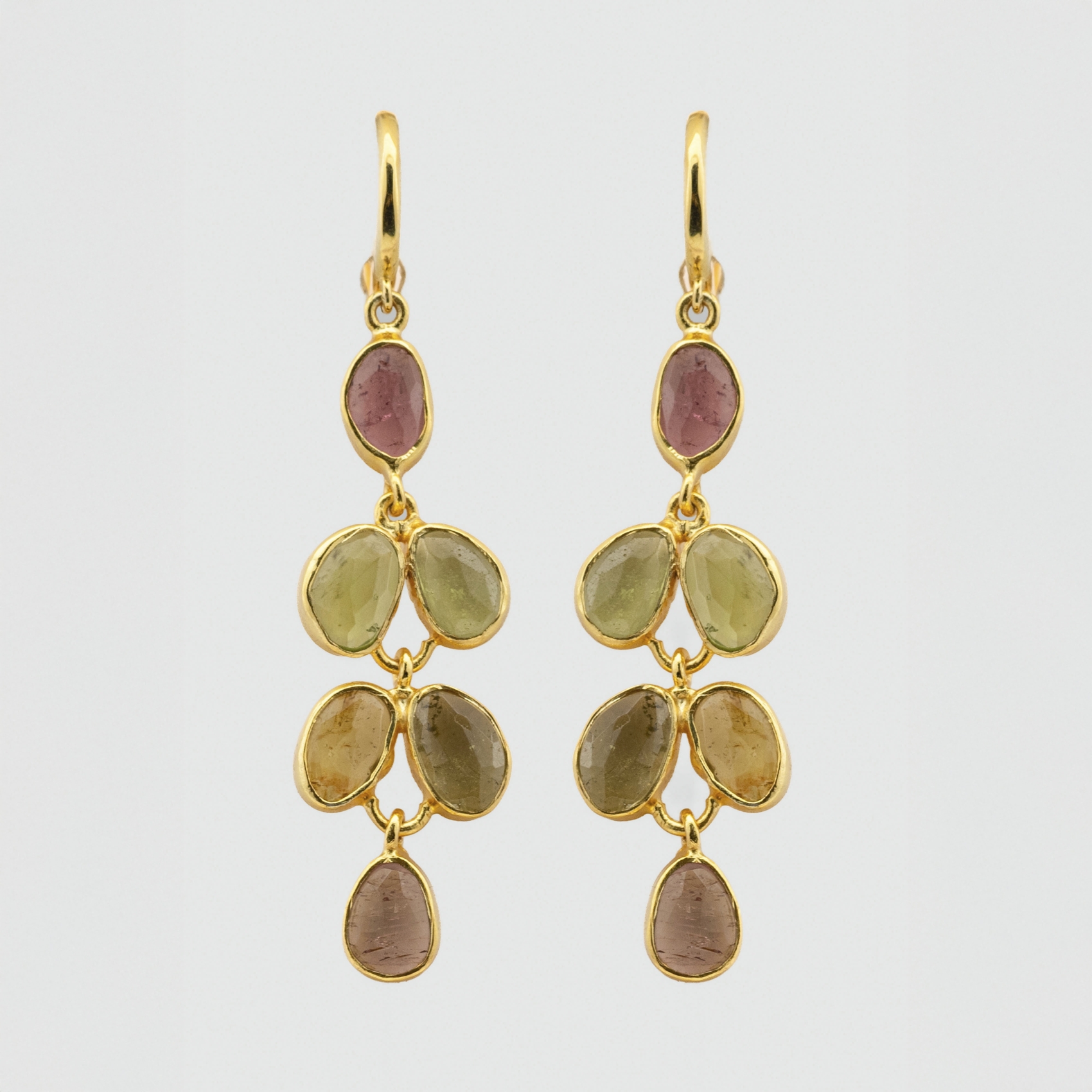Pendientes en plata dorada con turmalinas multicolor talla oval de 6 x 4 mm. Estimación:160 – 220€
