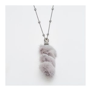 Gargantilla de cadena y colgante rectangular en plata con aplicación de piel en color naranja