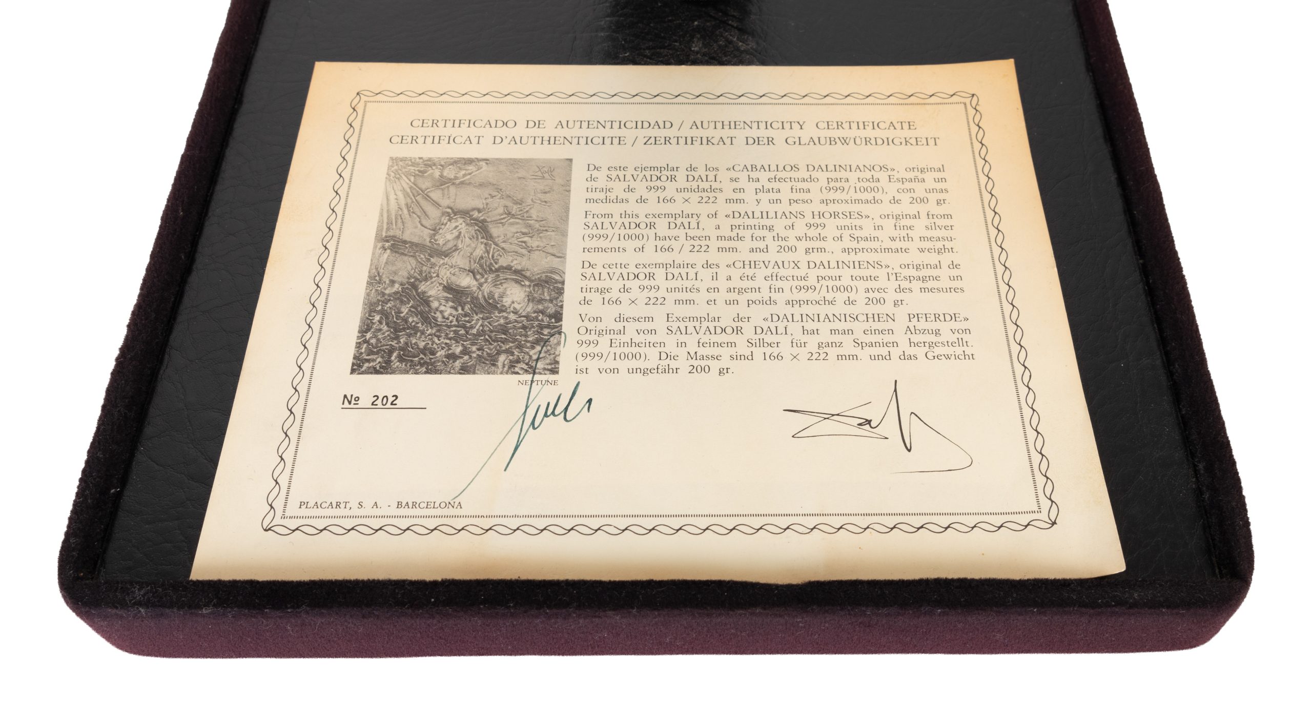 Placa en plata 999. Firmada y numerada 202/999.