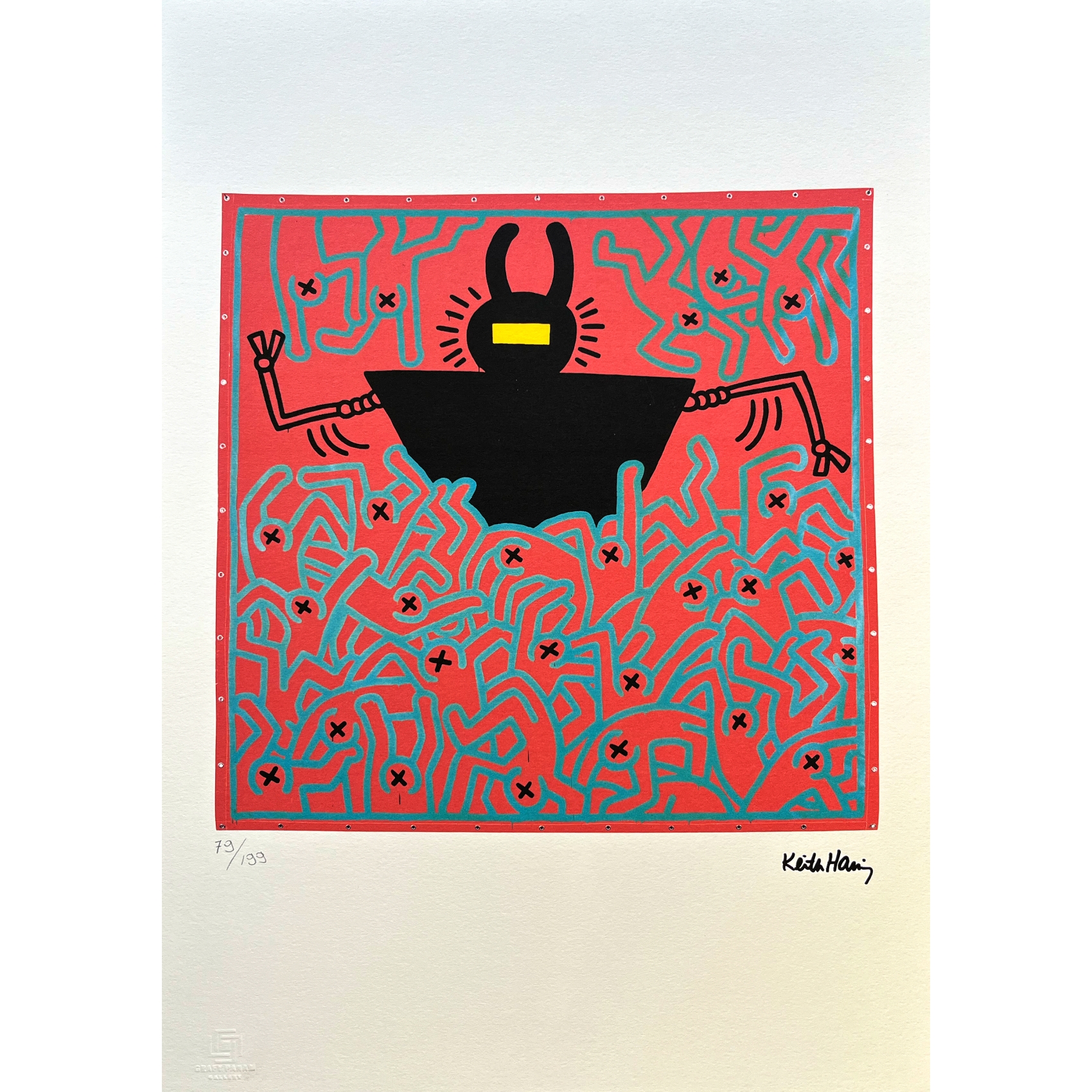 Litografía offset sobre papel. Firmada en plancha y numerada 57/150 a lápiz. Sello en seco de la fundación Keith Haring.