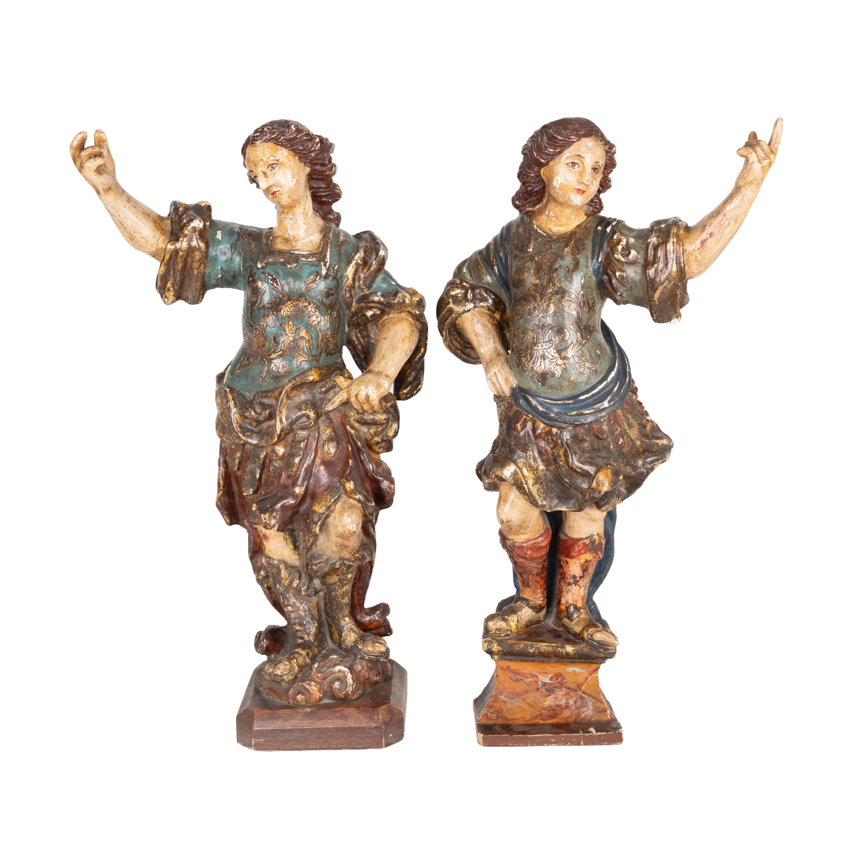 Pareja de esculturas en madera tallada, policromada y sobredorada.
