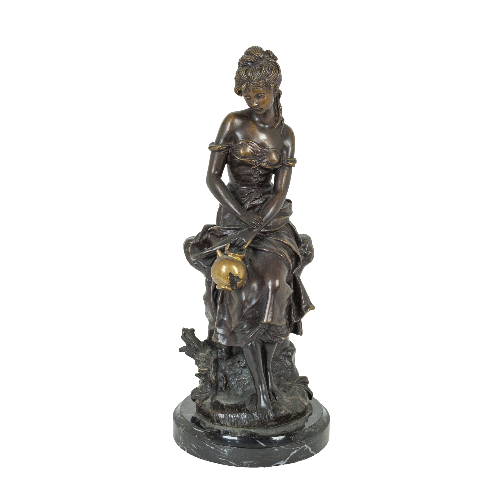 Escultura en bronce patinado sobre peana en mármol negro veteado. Firmada.