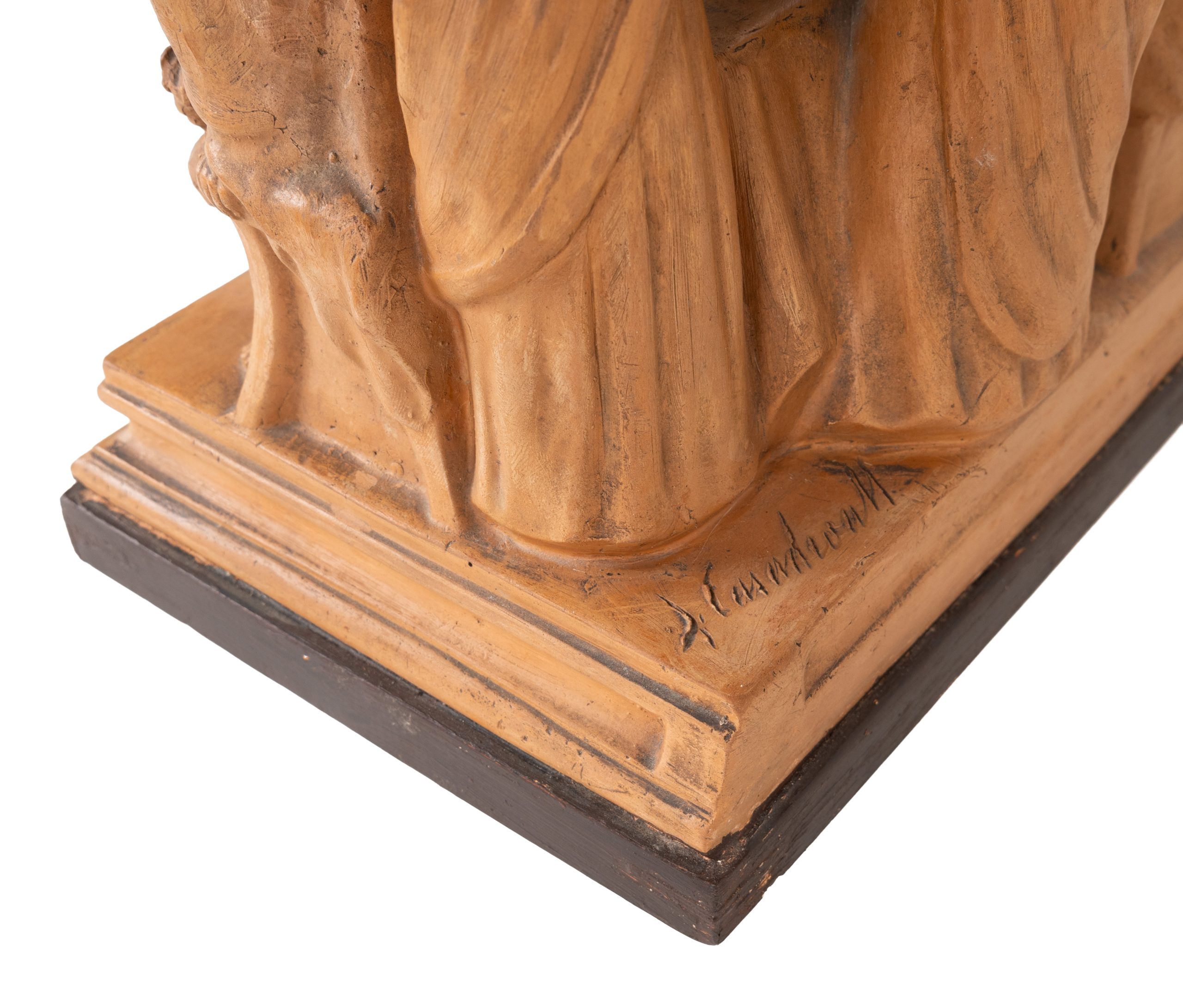 Escultura en terracota sobre base en madera. Firmada J. Casadevall.