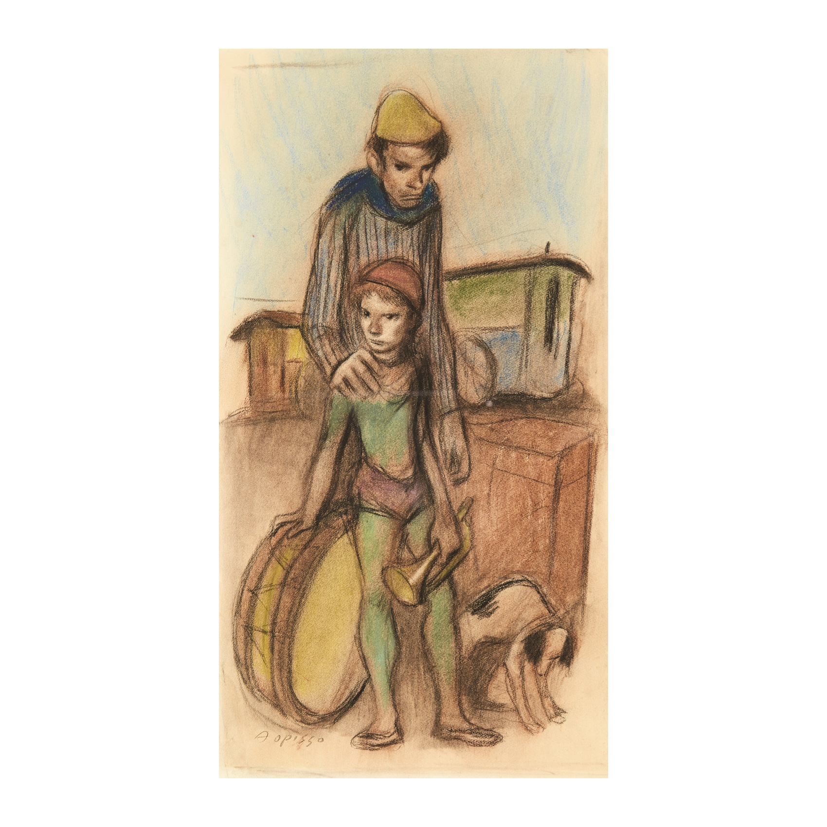Dibujo a carboncillo y pastel sobre papel. Firmado.