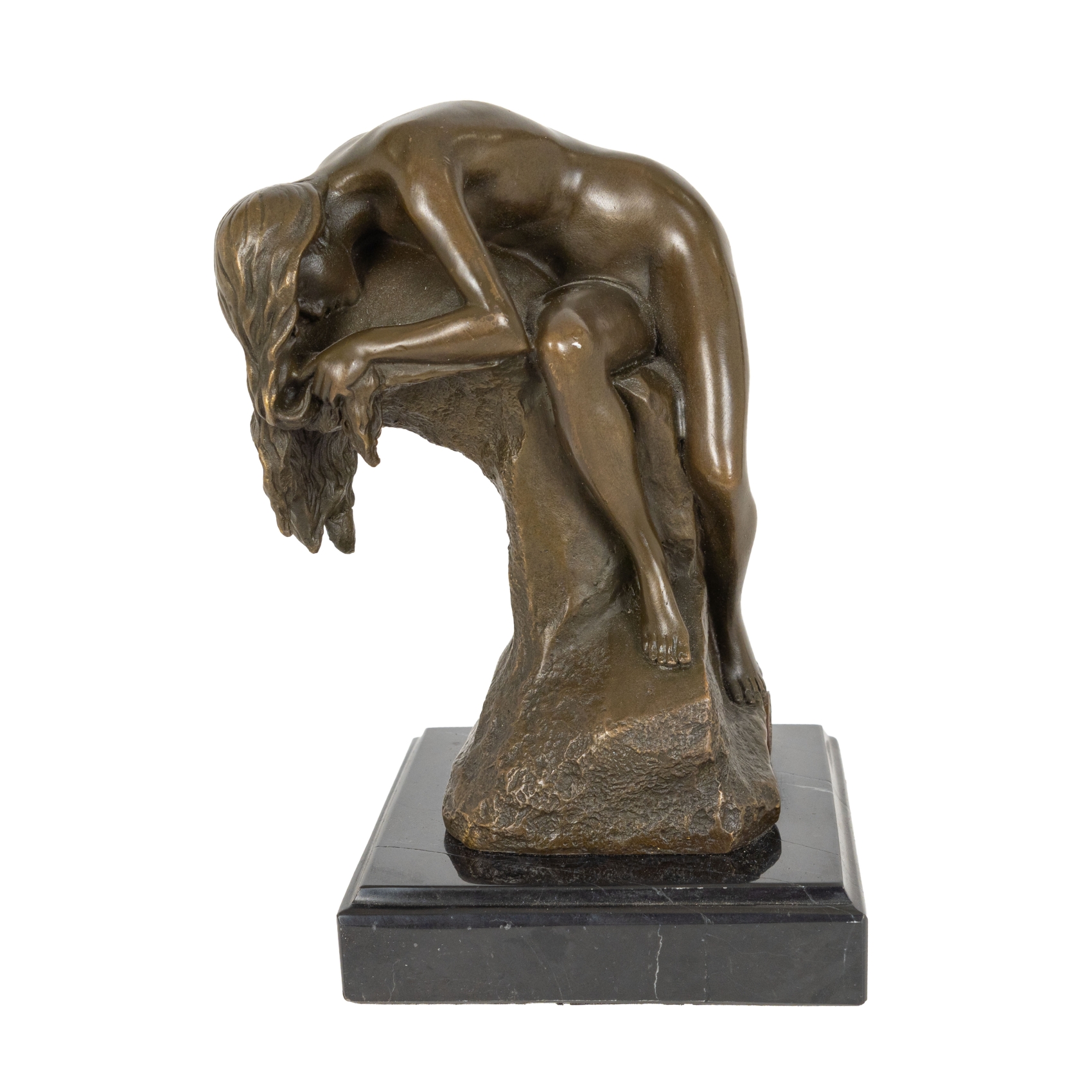 Escultura en bronce patinado sobre peana en mármol negro veteado. Firmada. Presenta sello de fundición, París.