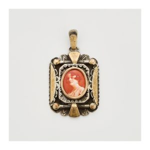 Pareja de paneles chinos en madera frutal tallada en altorrelieve con representación de motivos palaciegos, s.XX. Enmarcados y acristalados.