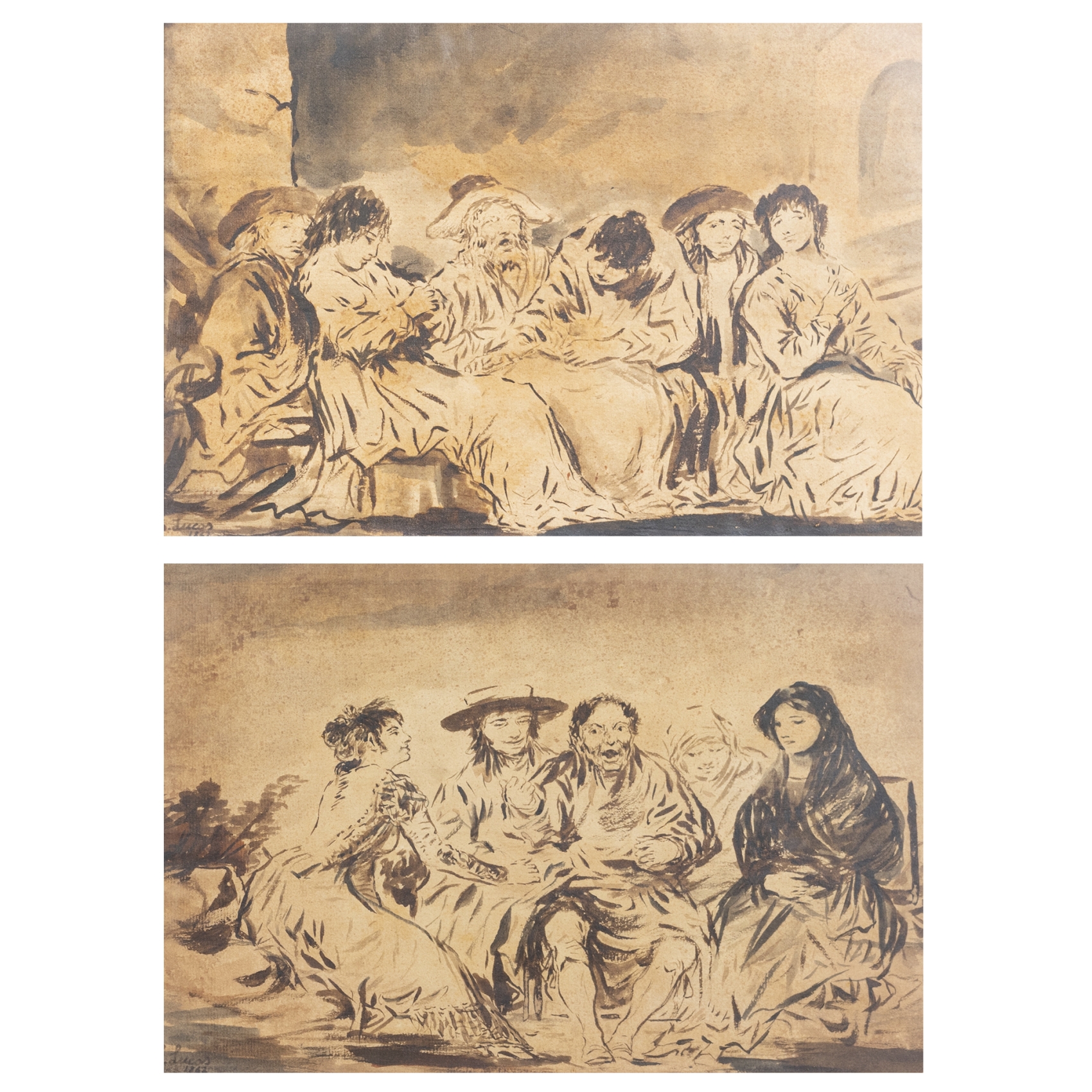 Pareja de acuarelas sobre papel. Firmadas y fechadas en 1862.