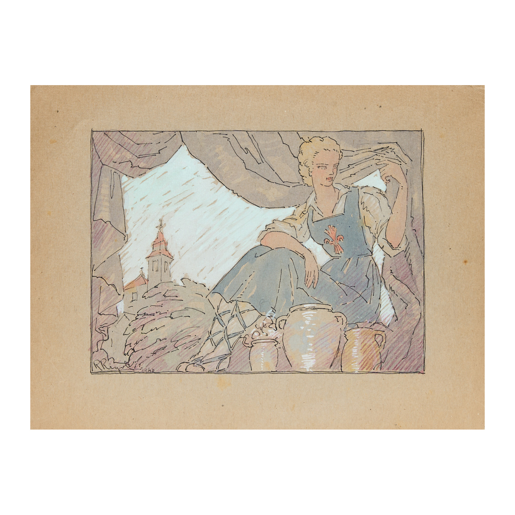 Técnica mixta sobre papel. Firmado y fechado en 1940.