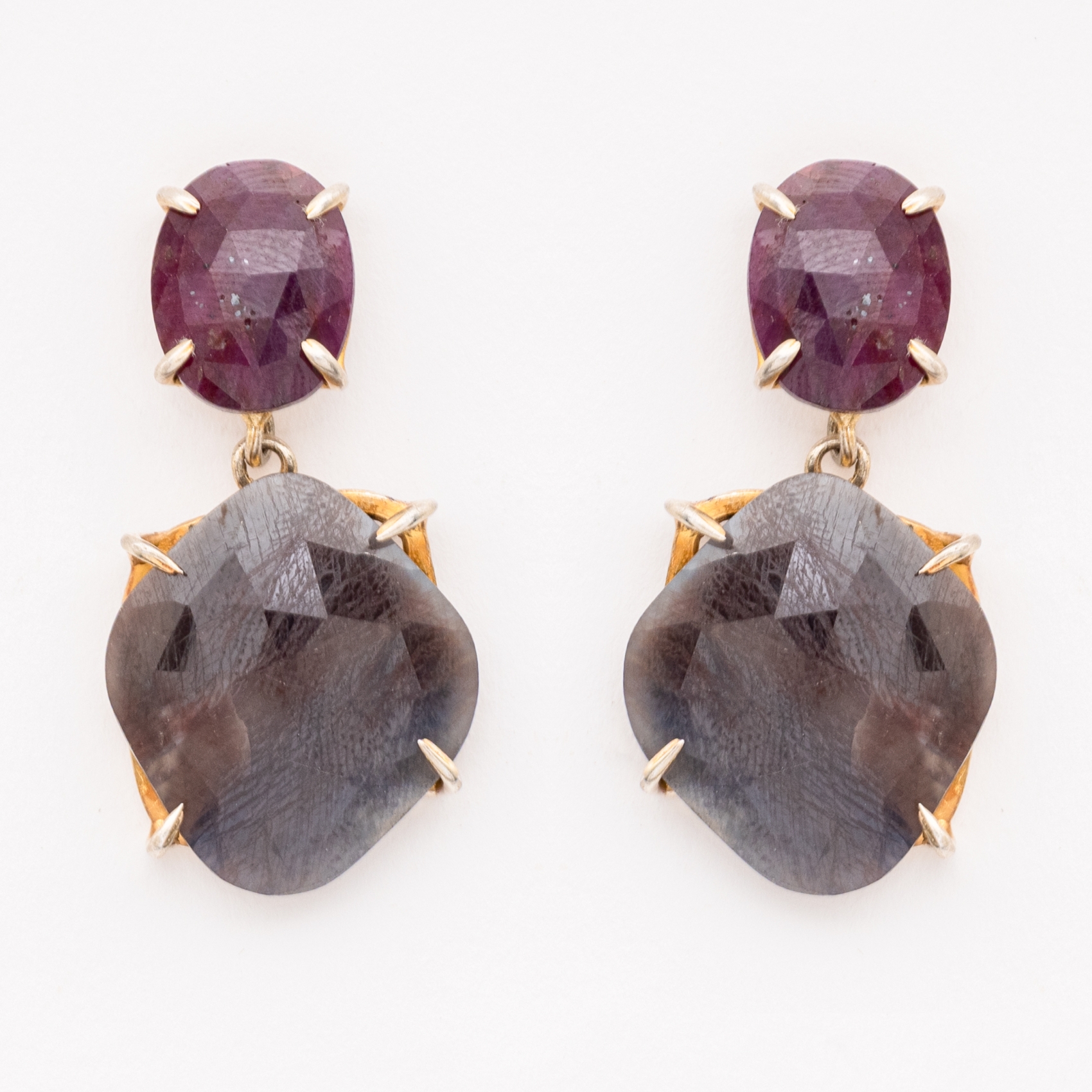 Pendientes en plata dorada con corindones de 13 x 10 y 22 x 19 mm. engastados en garras. Estimación:160 – 190€