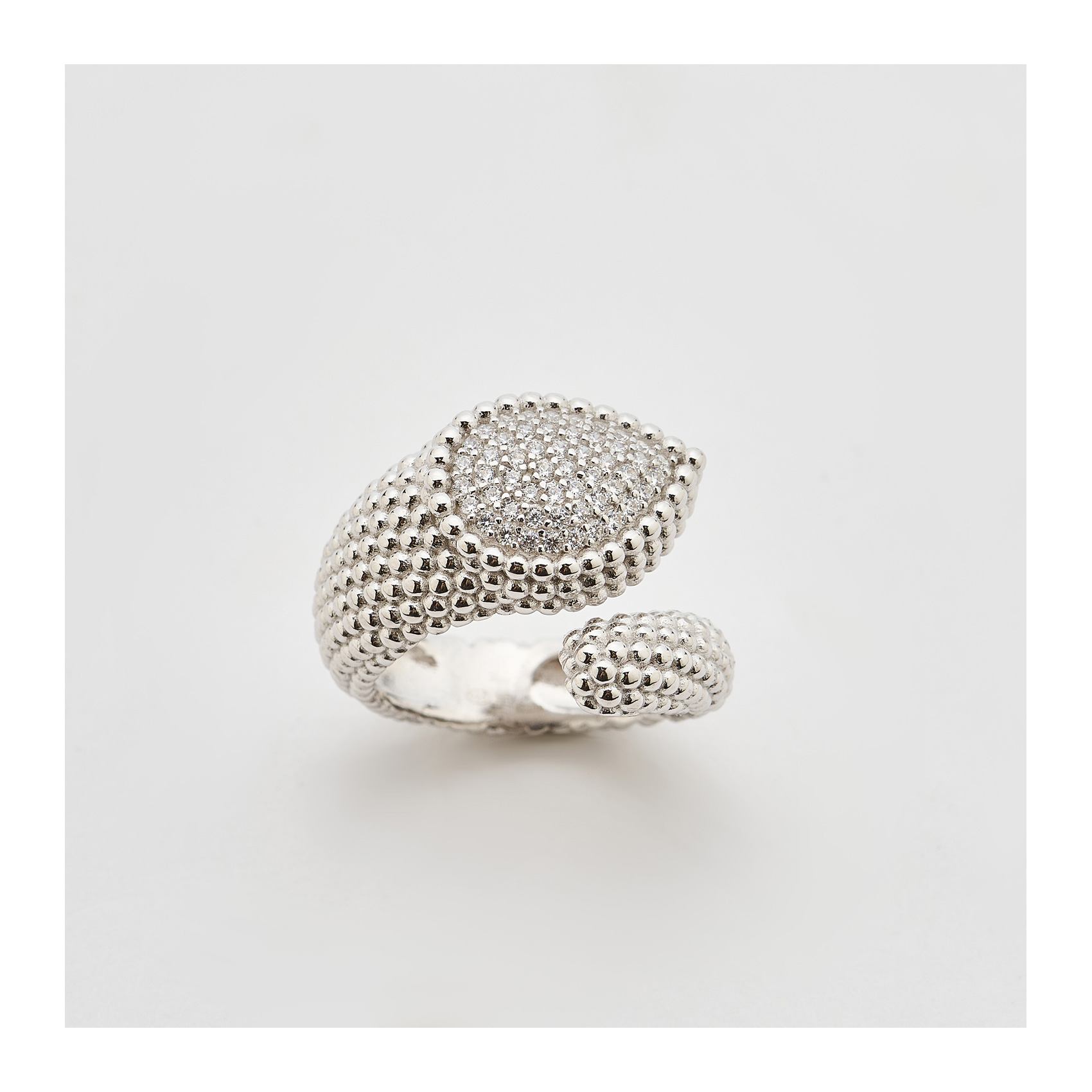 Sortija sello en plata con circonitas talla marquise en tonalidad salmón