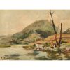 Vicenç Solé Jorba (Olot, Girona, 1904-El Brull del Montseny, Barcelona, 1946) Paisaje lacustre. Óleo sobre táblex. Firmado. 28 x 37 cm. Estimación: 700 – 900 €.