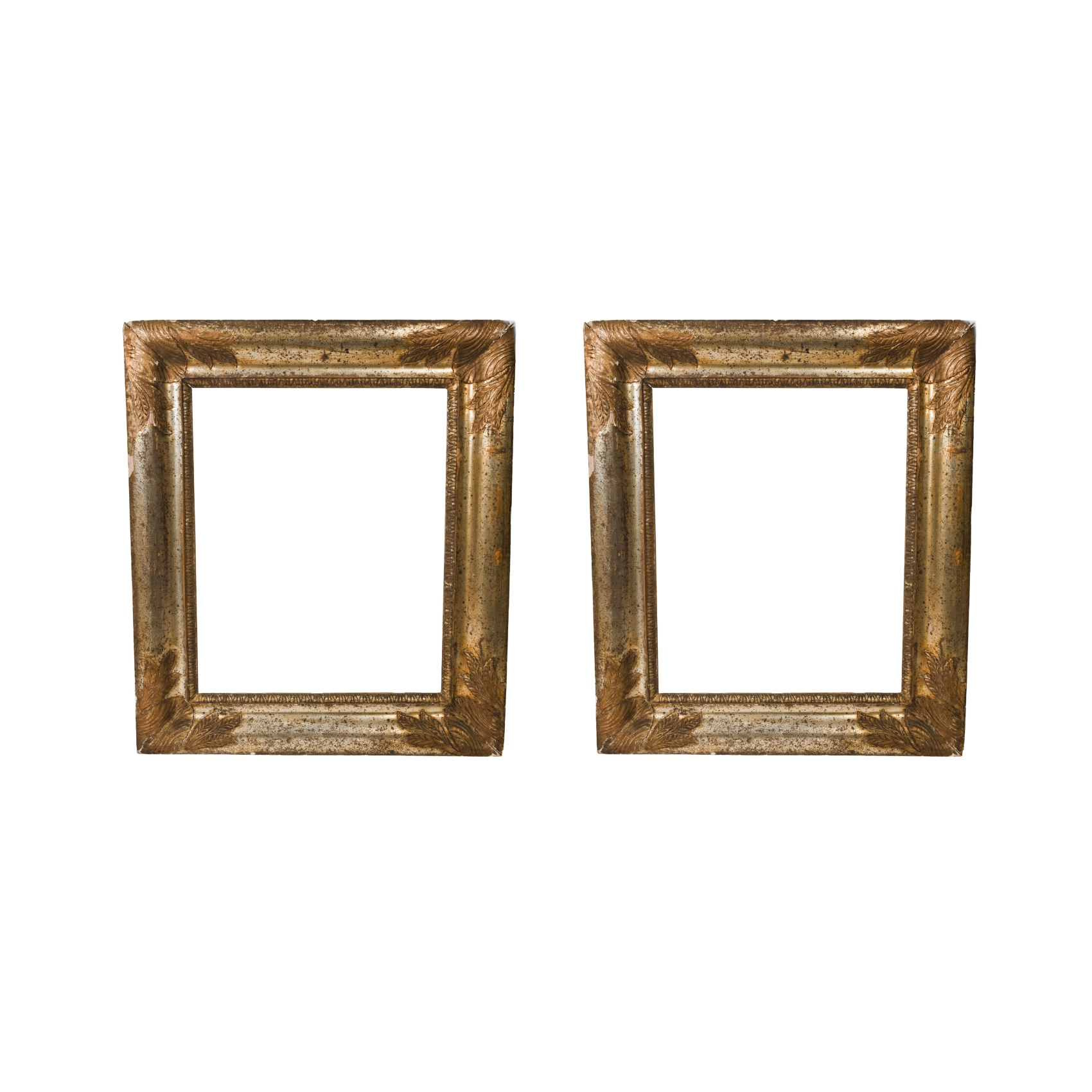 Pareja de marcos italianos en madera modulada y dorada con motivos vegetales en ángulos e interior con greca de ovas, fles. XVIII-ppios. del s.XX.