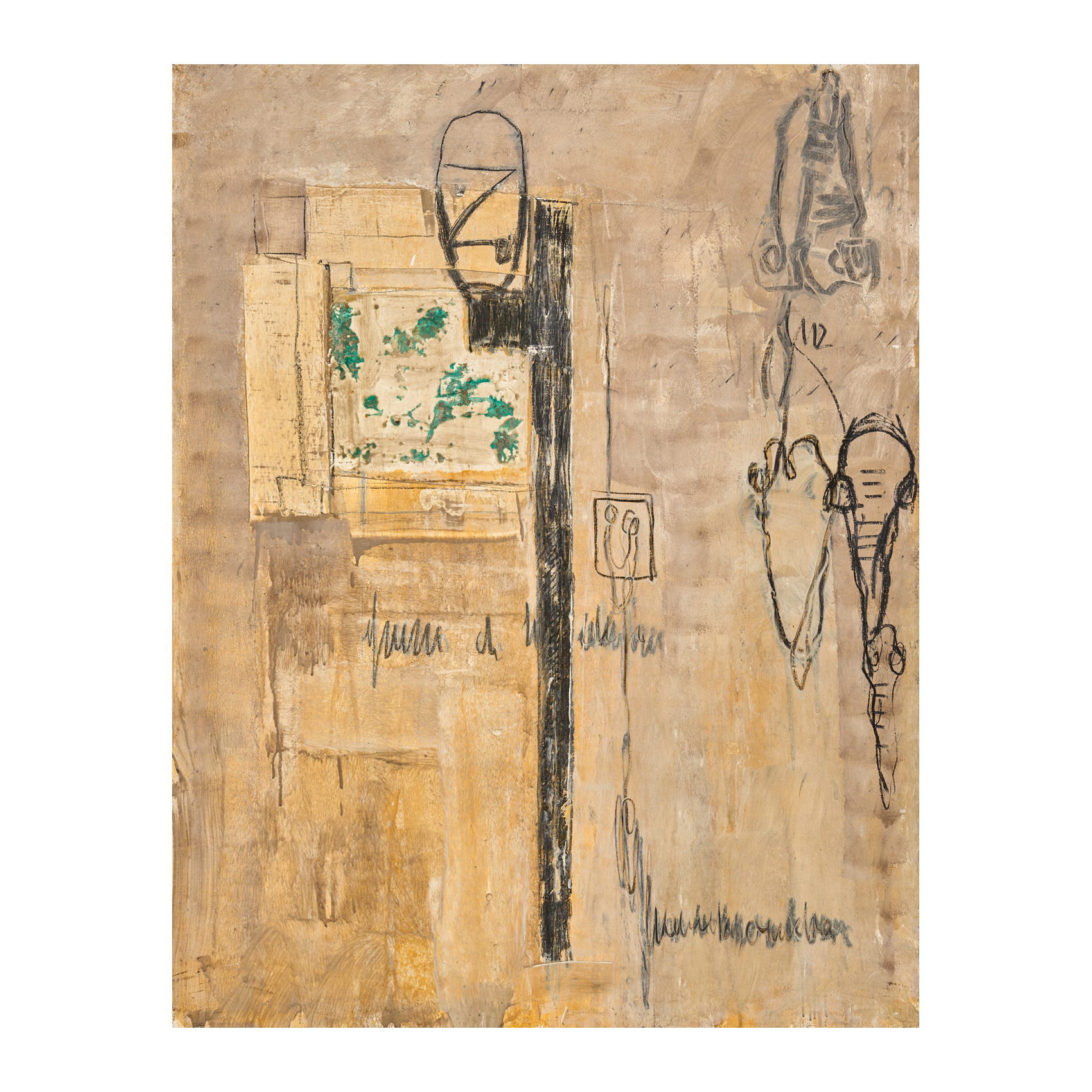 Técnica mixta y collage sobre tela. Titulado, firmado, fechado en 1990 y localizado en Palma al dorso.