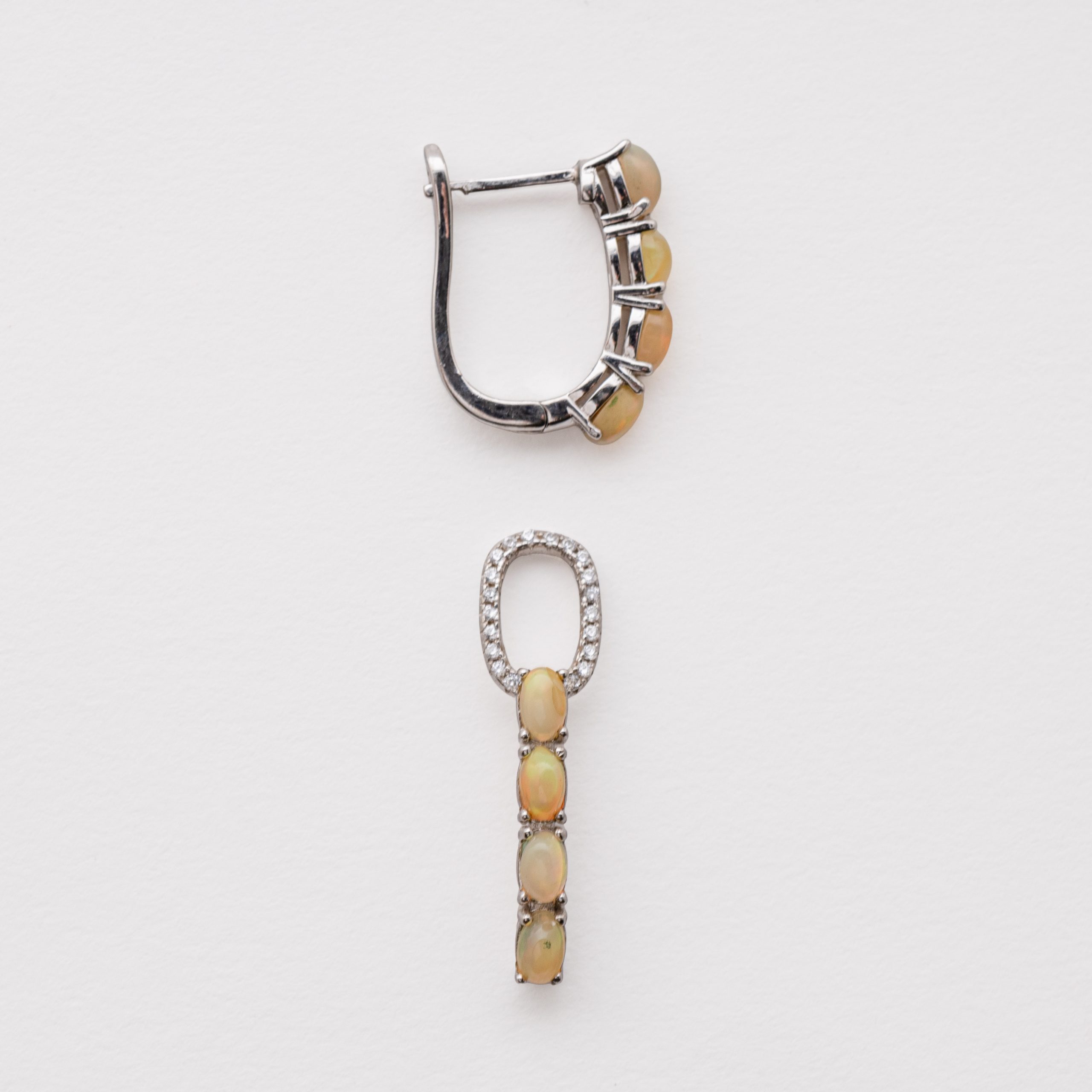 Pendientes desmontables en plata con cabujones ovales de ópalo engastados en garras y óvalo de circonitas talla redonda.