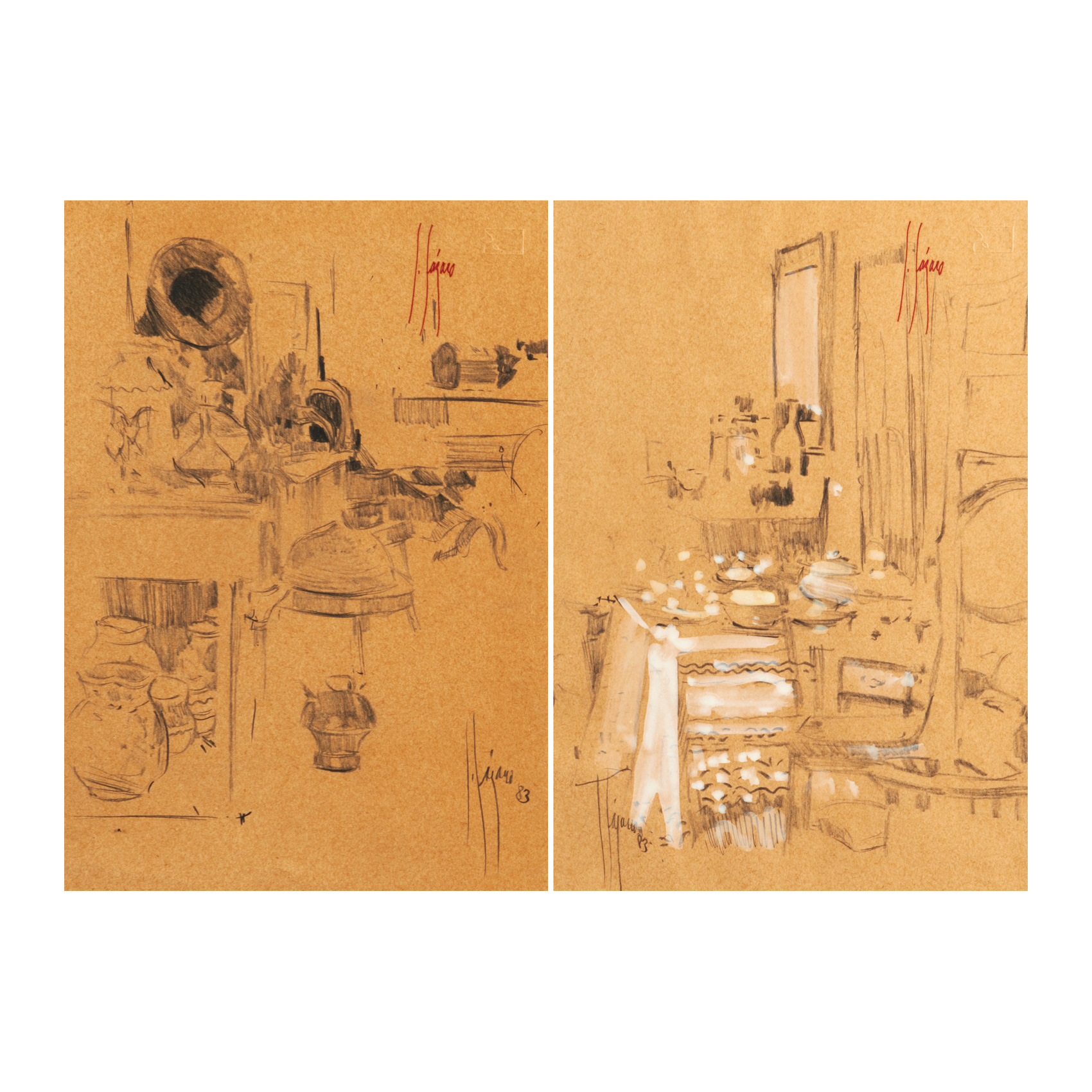 Pareja de técnicas mixtas sobre papel. Firmados y fechados en 1983.