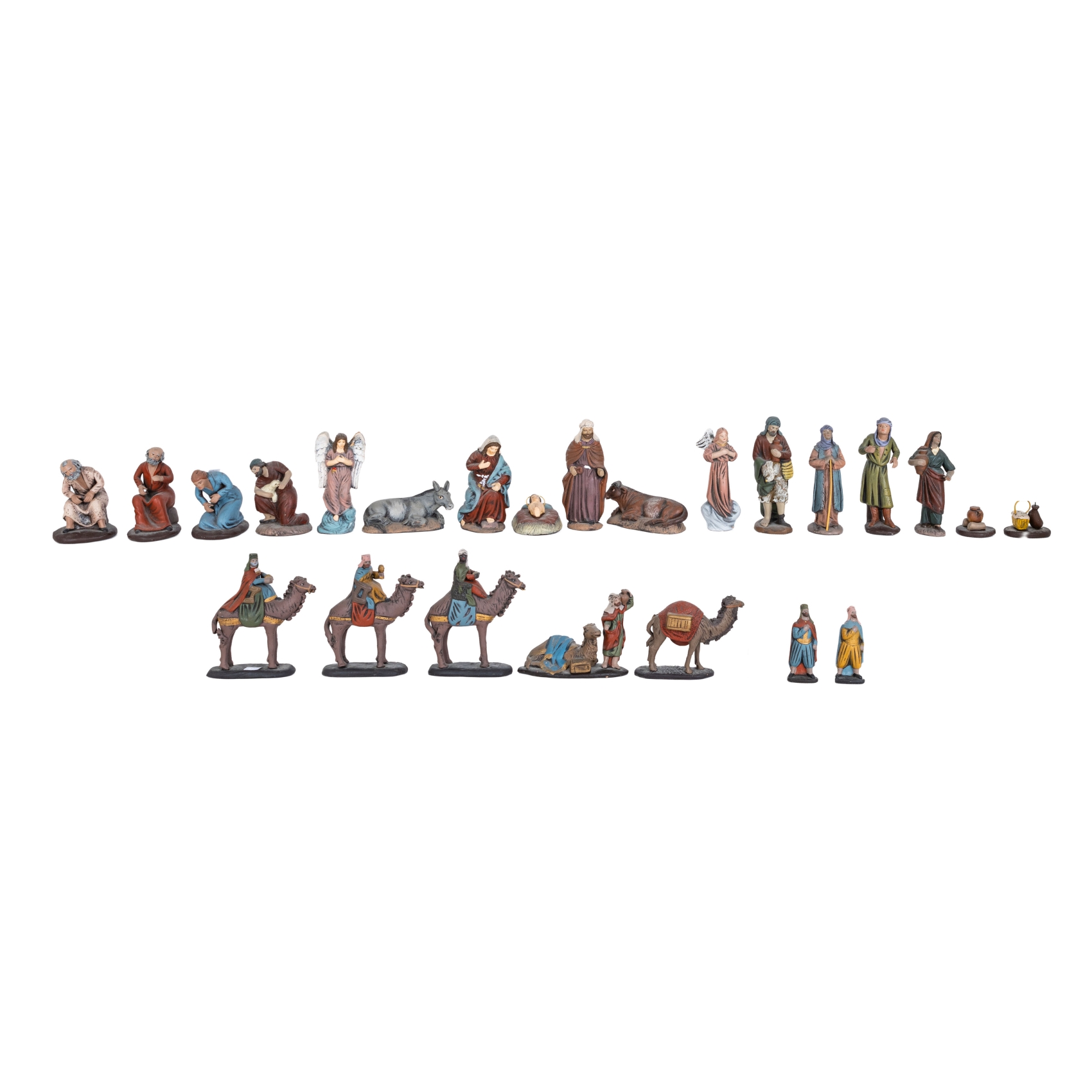 Anunciación para Belén formado por 22 piezas en barro cocido, c.1970. Presentan marcas de origen algunas.