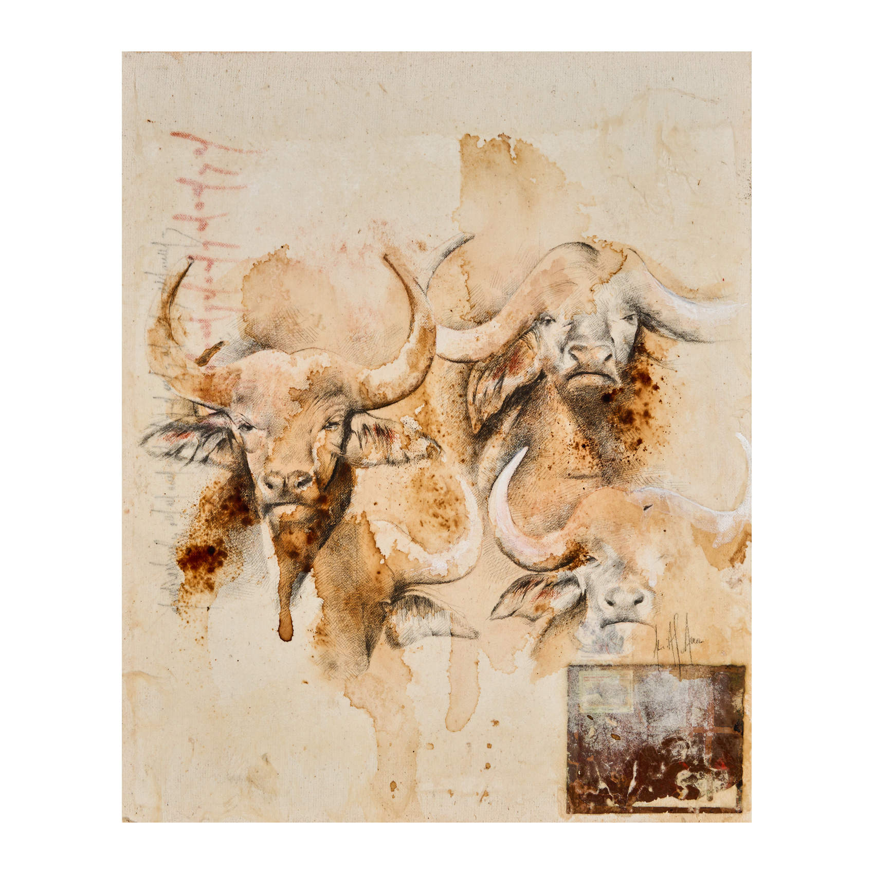 Técnica mixta y collage sobre tela. Firmado.
