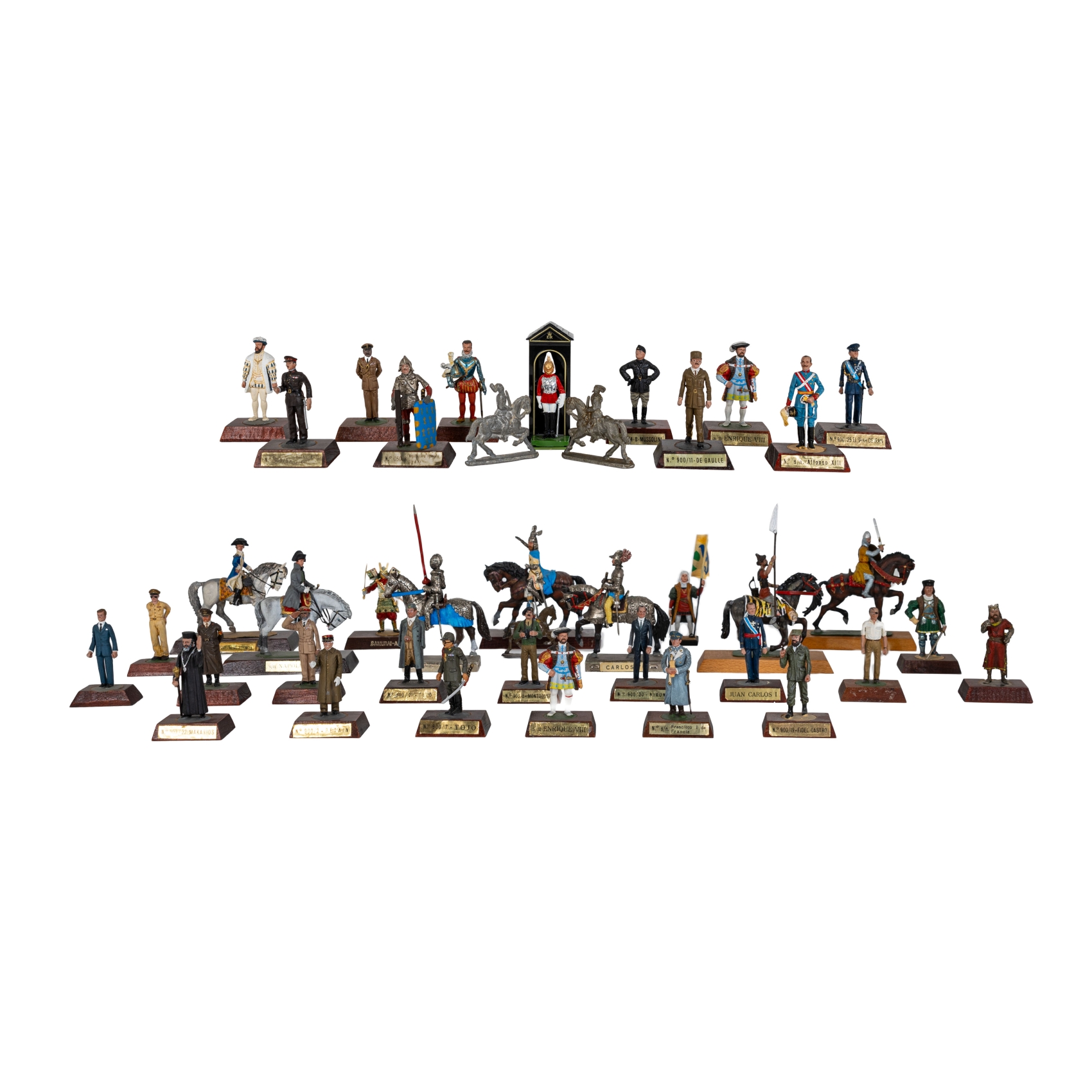 Lote compuesto por treinta y ocho figuritas de plomo pintadas a mano, representando diferentes personajes históricos, s.XX.