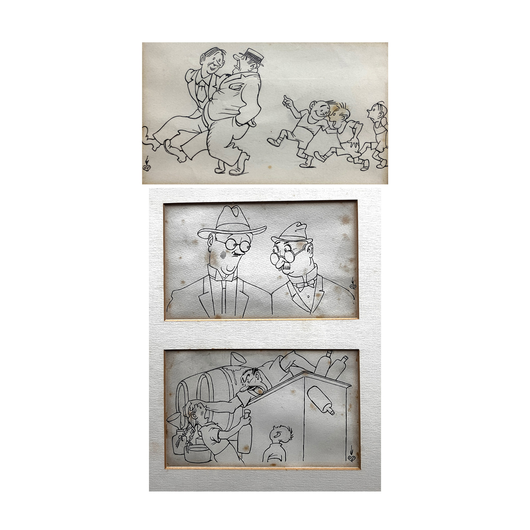 Lote de tres dibujos a tinta sobre papel para la revista El Patufet. Inscripción al dorso. Firmados.