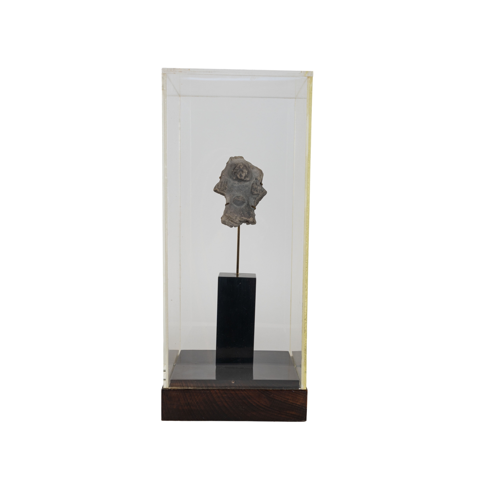 Escultura precolombina en terracota con representación de figura zoomorfa. Cultura Tumaco – La Tolita, actual Ecuador y Colombia, 500 a.C.-500 d.C. Custodiada en urna expositora. En buen estado de conservación, con algunas faltas. Adjunta certificado de autenticidad.