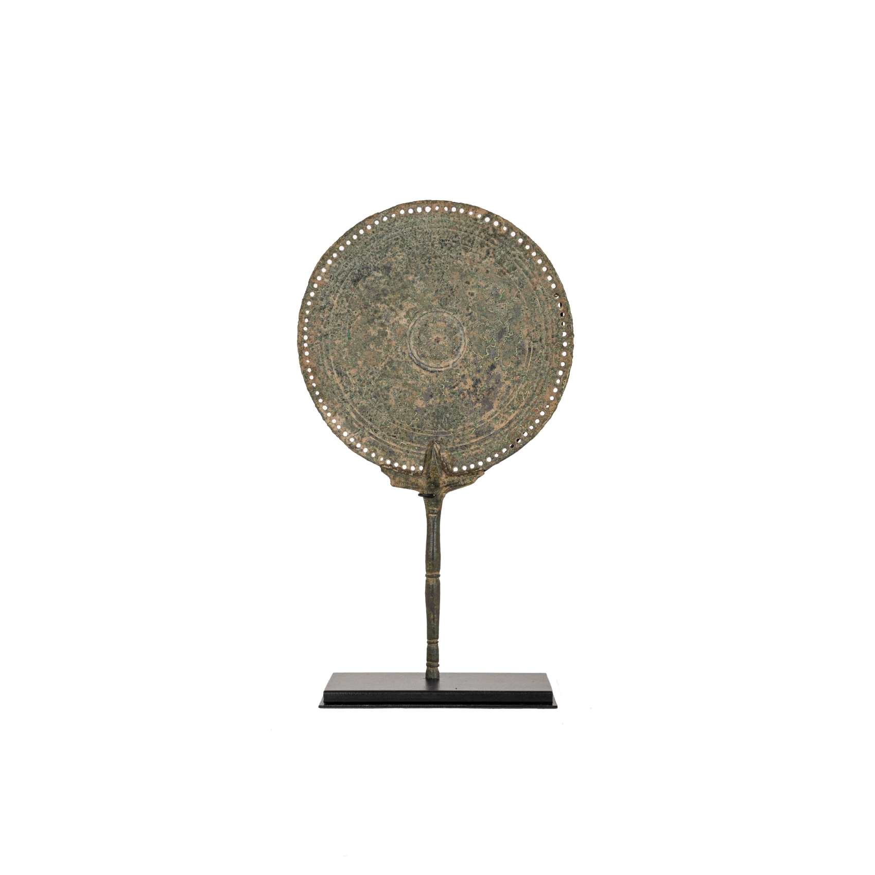 Espejo romano en bronce patinado, siglo I-III d.C. En buen estado de conservación. Adjunta certificado de autenticidad.