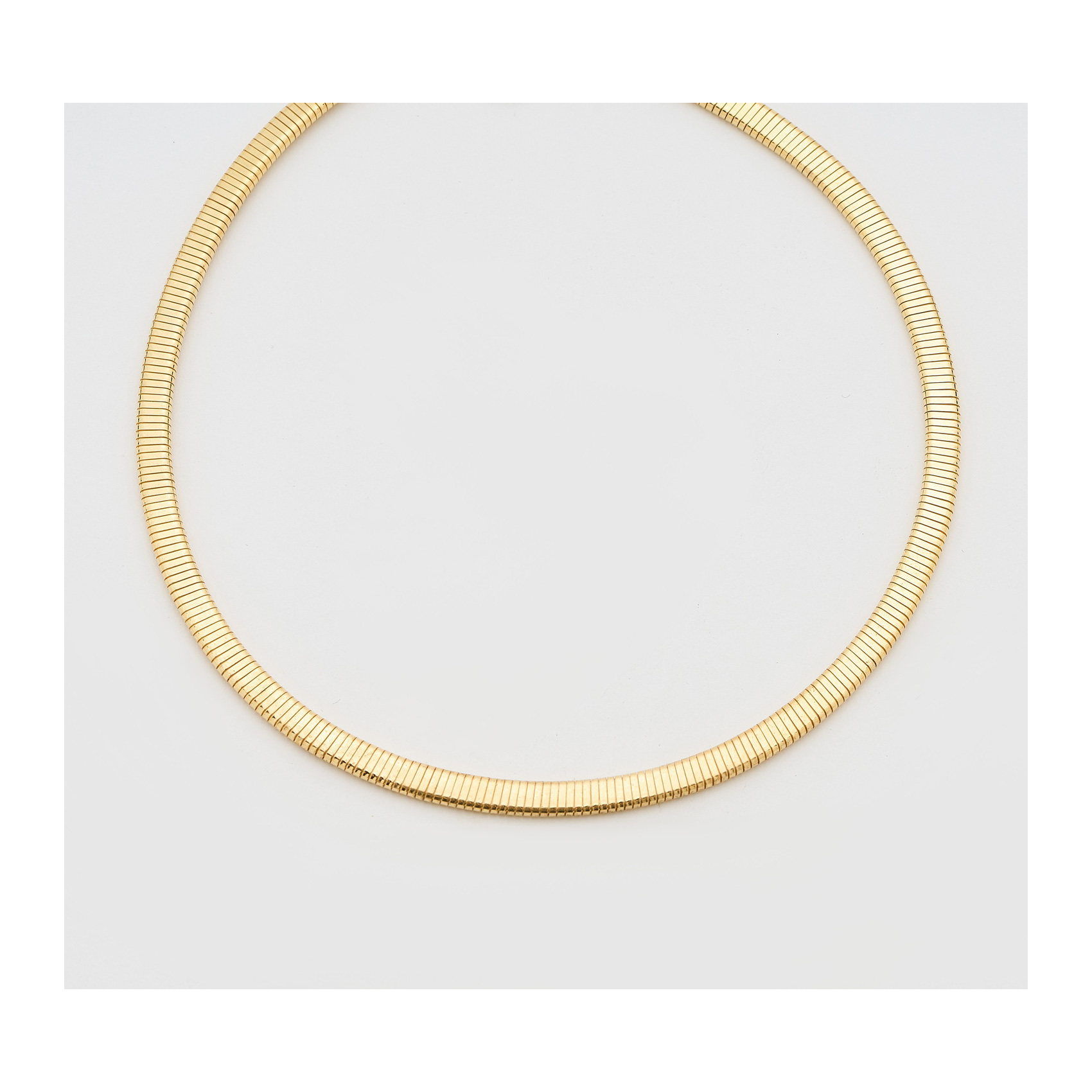 Gargantilla tubogas en plata dorada.