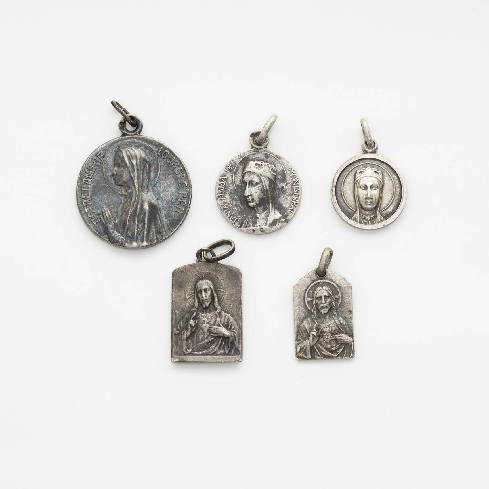 Cinco medallas escapulario en plata. Estimación:90 – 110€