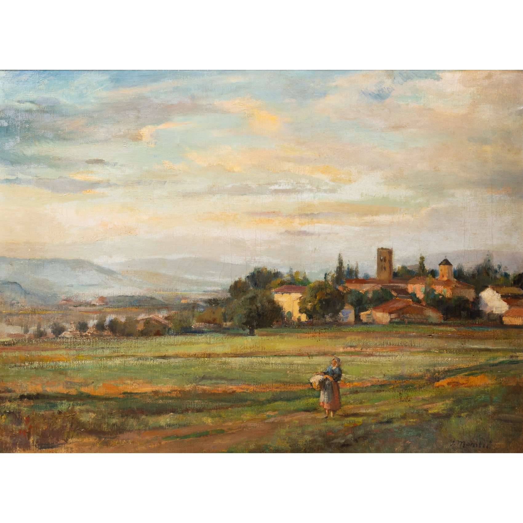 Paisaje rural con campesina.