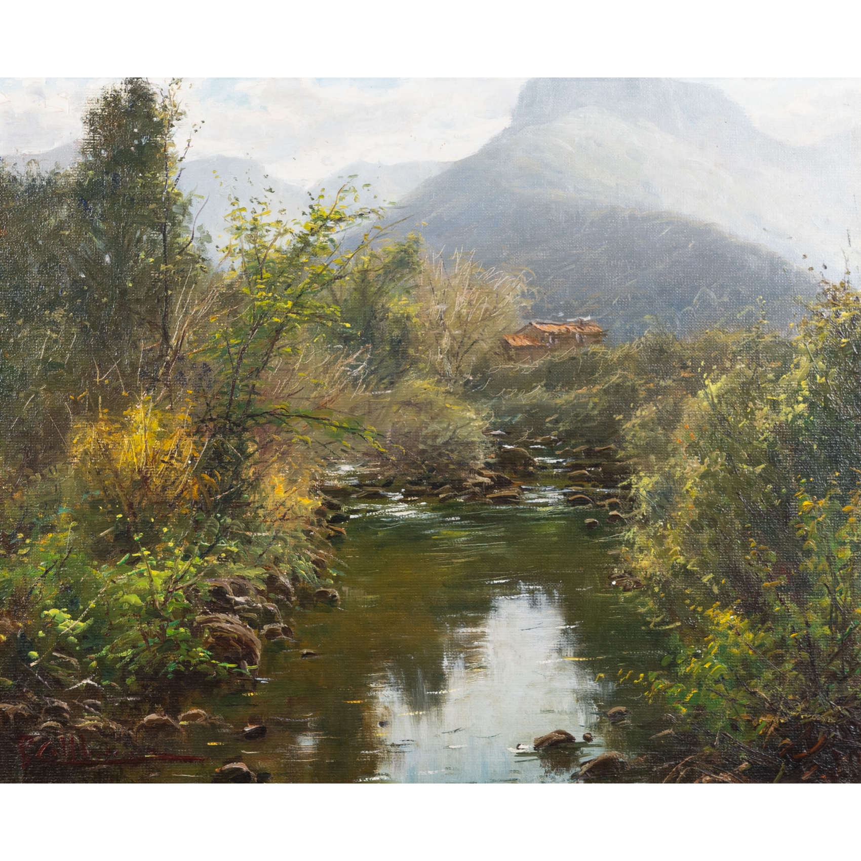 Óleo sobre tela. Firmado. Titulado, firmado y localizado en Olot al dorso.