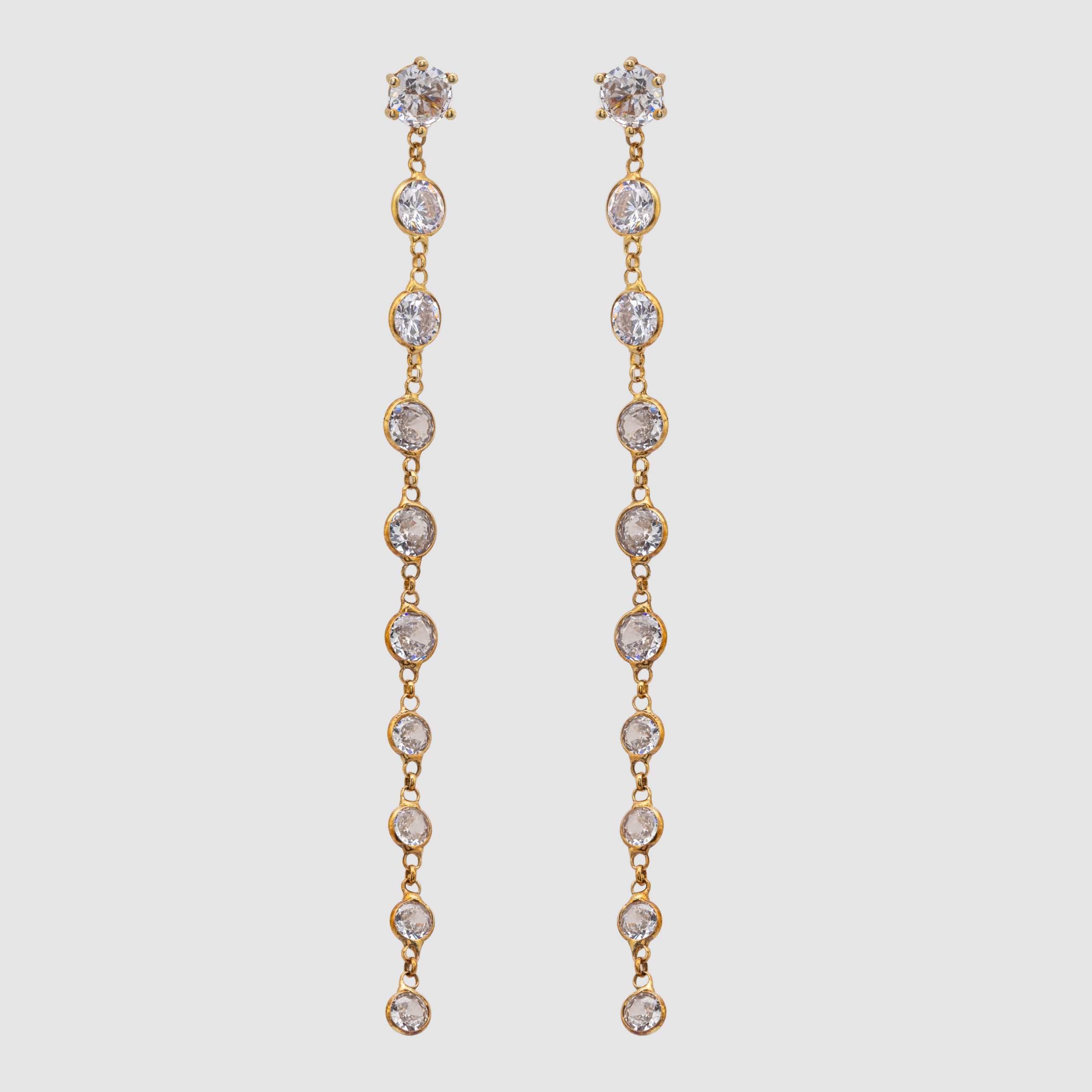 Juego de pendientes y cadena en plata dorada con circonitas talla redonda.