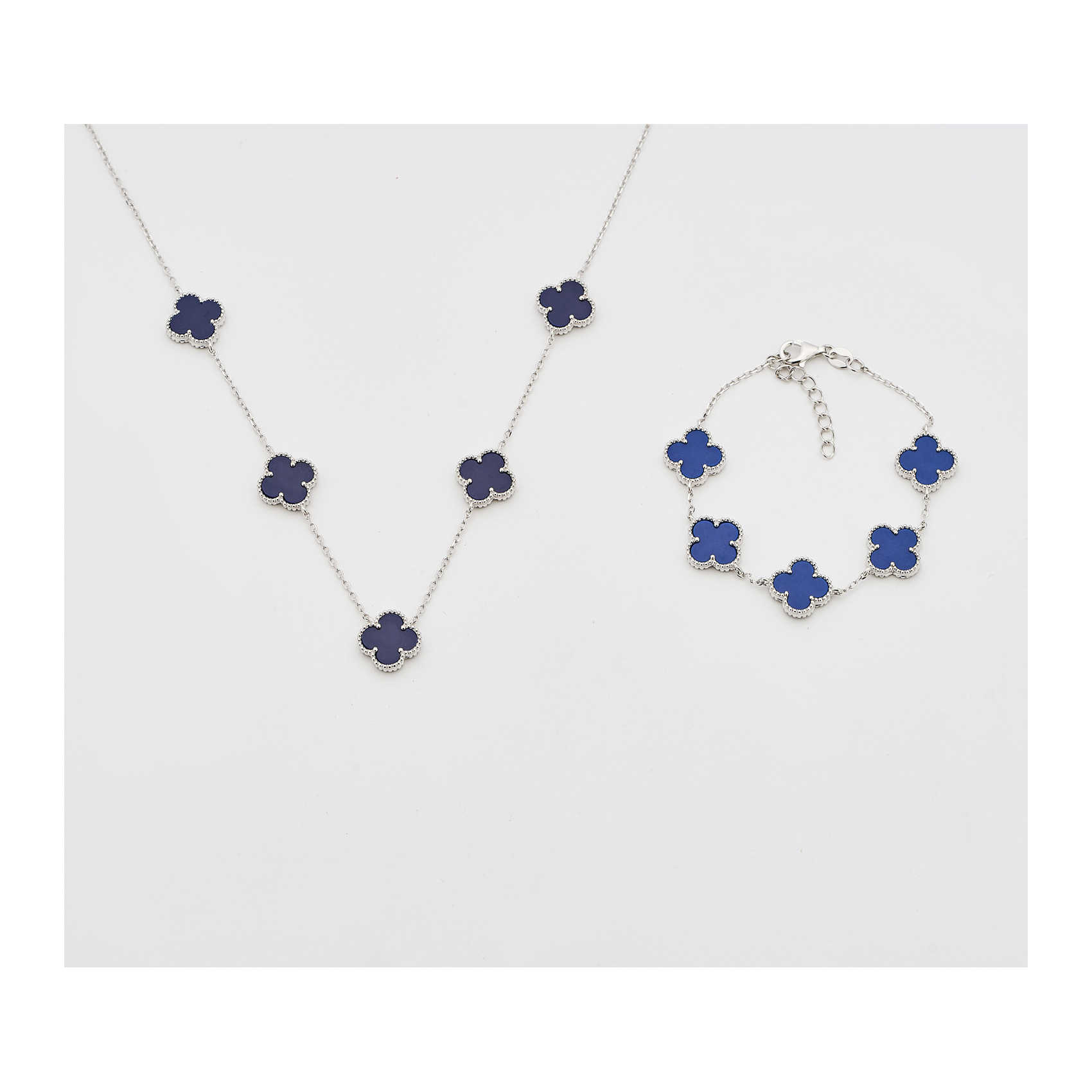 Juego de gargantilla y pulsera estilo Van Cleef en plata con lapizlazuli.
