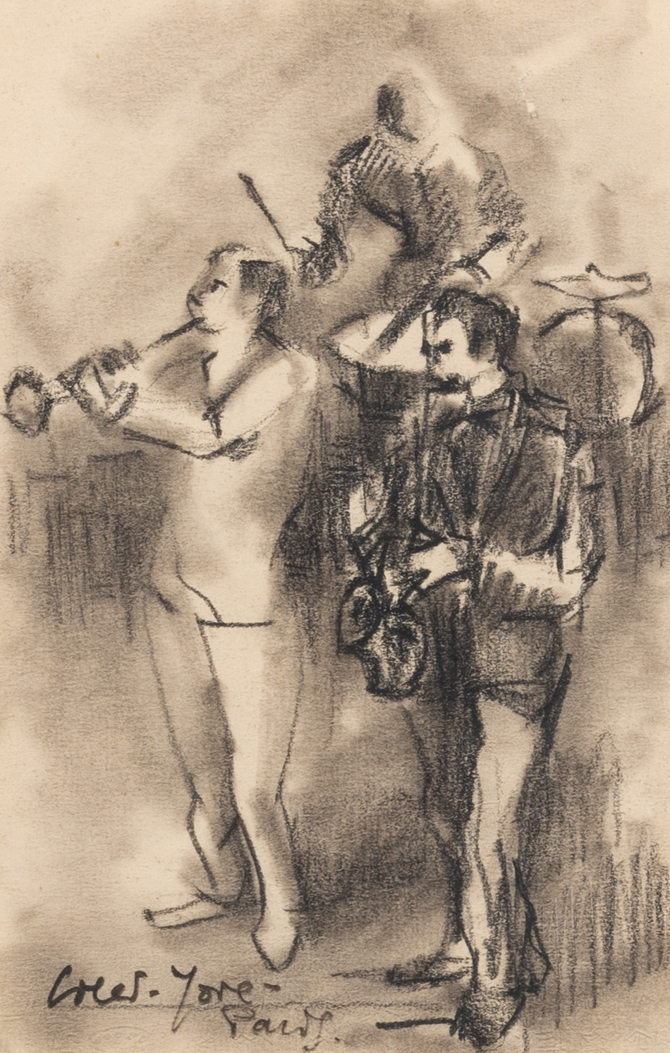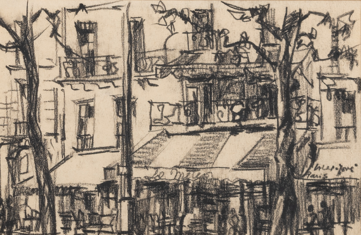 Pareja de dibujos a carboncillo sobre papel. Firmados y localizados en París.