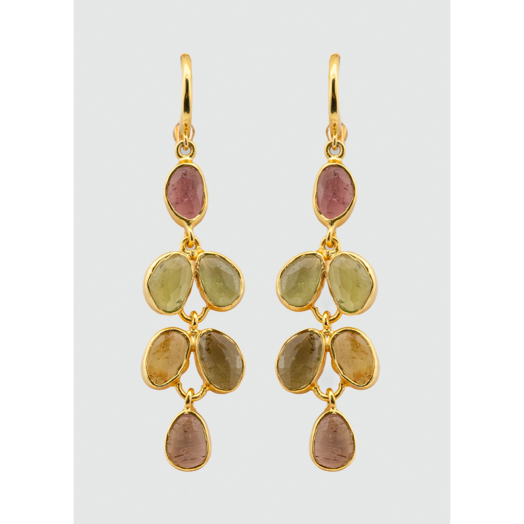 Pendientes en plata dorada con turmalinas multicolor talla oval de 6 x 4 mm. Estimación:160 – 220€