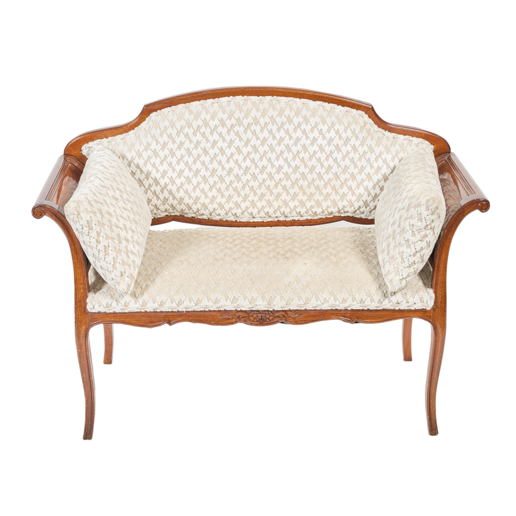 Diván estilo fernandino en madera de caoba con tapicería tonalidad beige, primera mitad del s.XX.