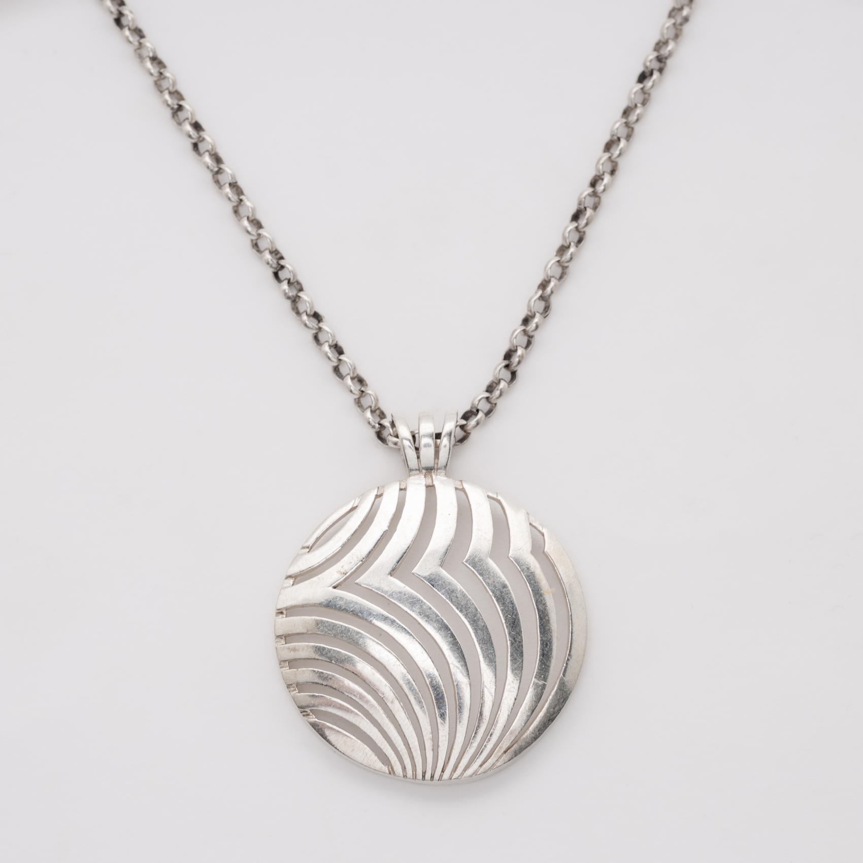 Cadena y colgante circular calado en plata.