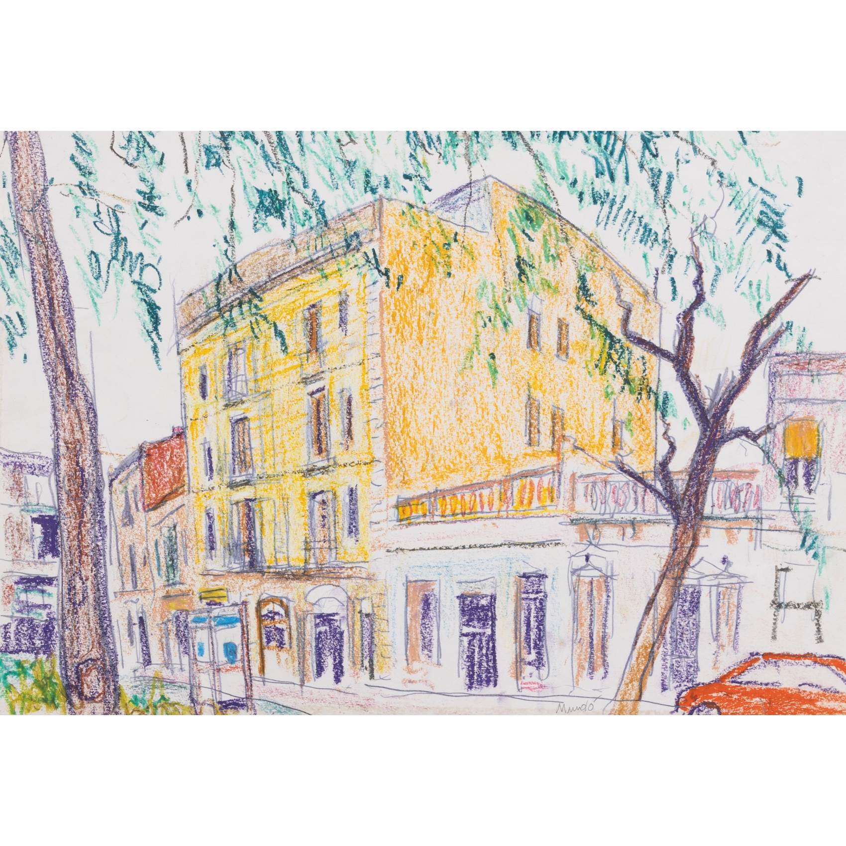 Dibujo a ceras y lápiz de color sobre papel. Firmado. Firmado al dorso.