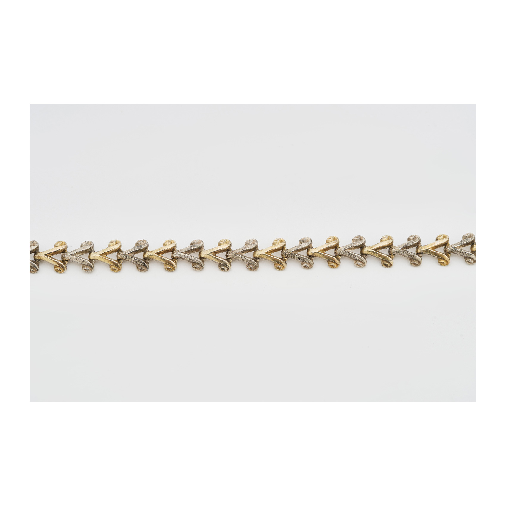 Pulsera articulada en plata y plata dorada con eslabones en V.