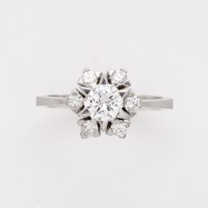Pendientes diseño corazón en oro blanco con diamantes talla brillante engastados en garras, 0,5 cm.