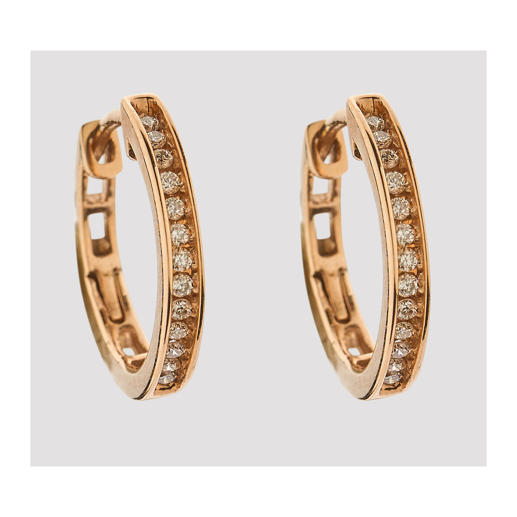 Pendientes criolla en oro rosa con frente de diamantes talla brillante.