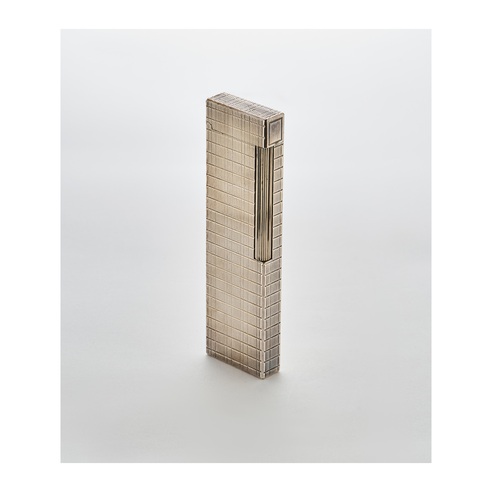 S.T. DUPONT. Encendedor de sobremesa en plaqué plata con decoración estriada. Estimación:230 – 270€
