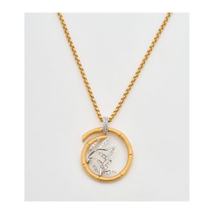 Cadena y colgante en plata con cuadrado diamantado y símil de olivina