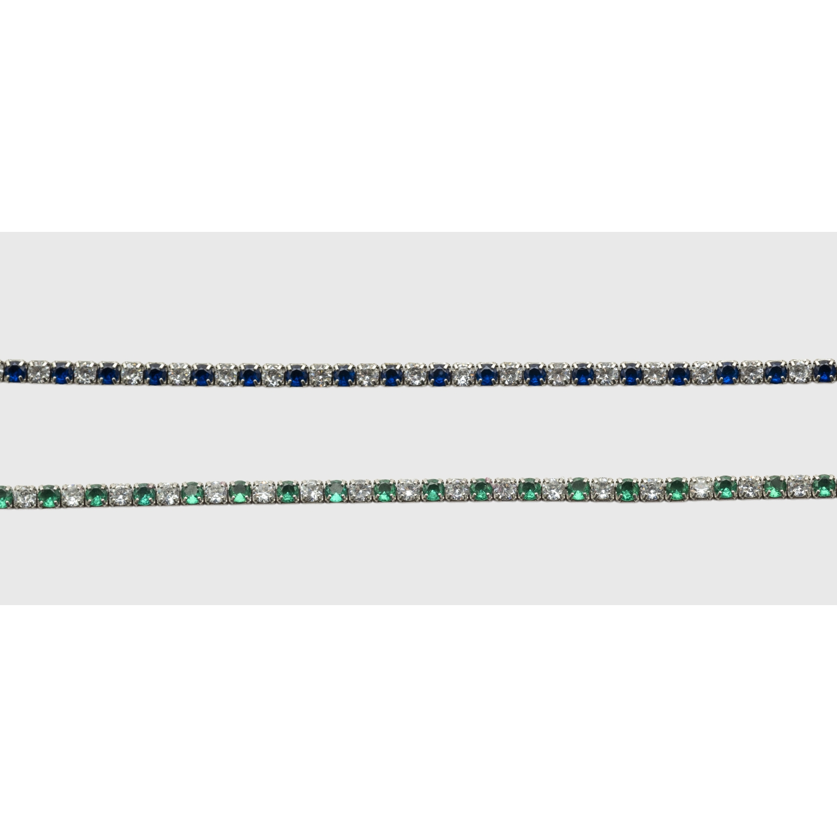 Dos pulseras rivière en plata, circonitas y símiles de esmeralda y zafiro azull