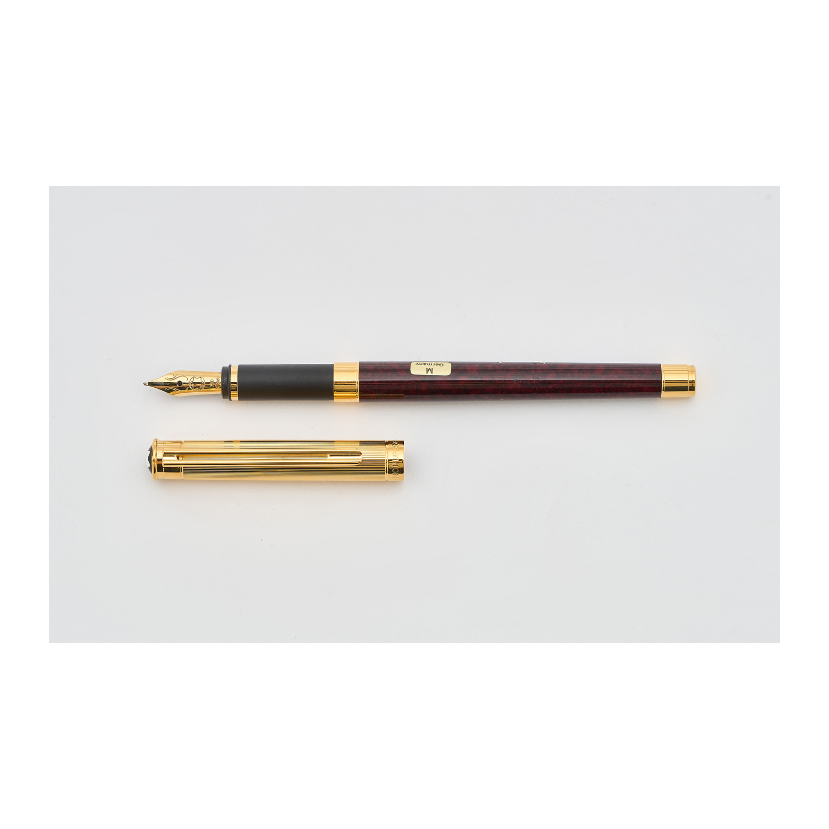 MONTBLANC «Noblesse Bordeaux». Estilográfica en laca china color burdeos y plaqué oro, c.1980.