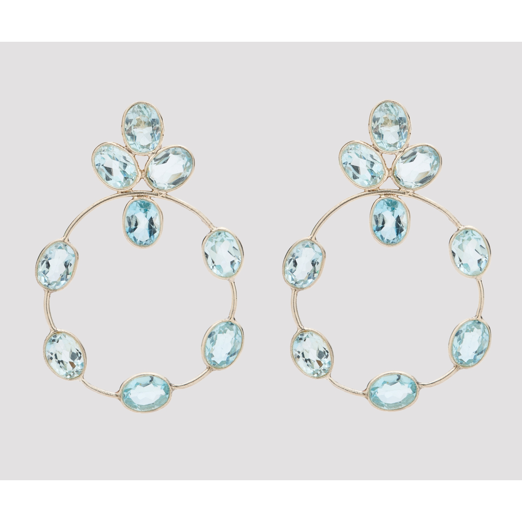 Pendientes en plata rodiada con símiles de topacio azul talla oval de 7 x 5 mm.