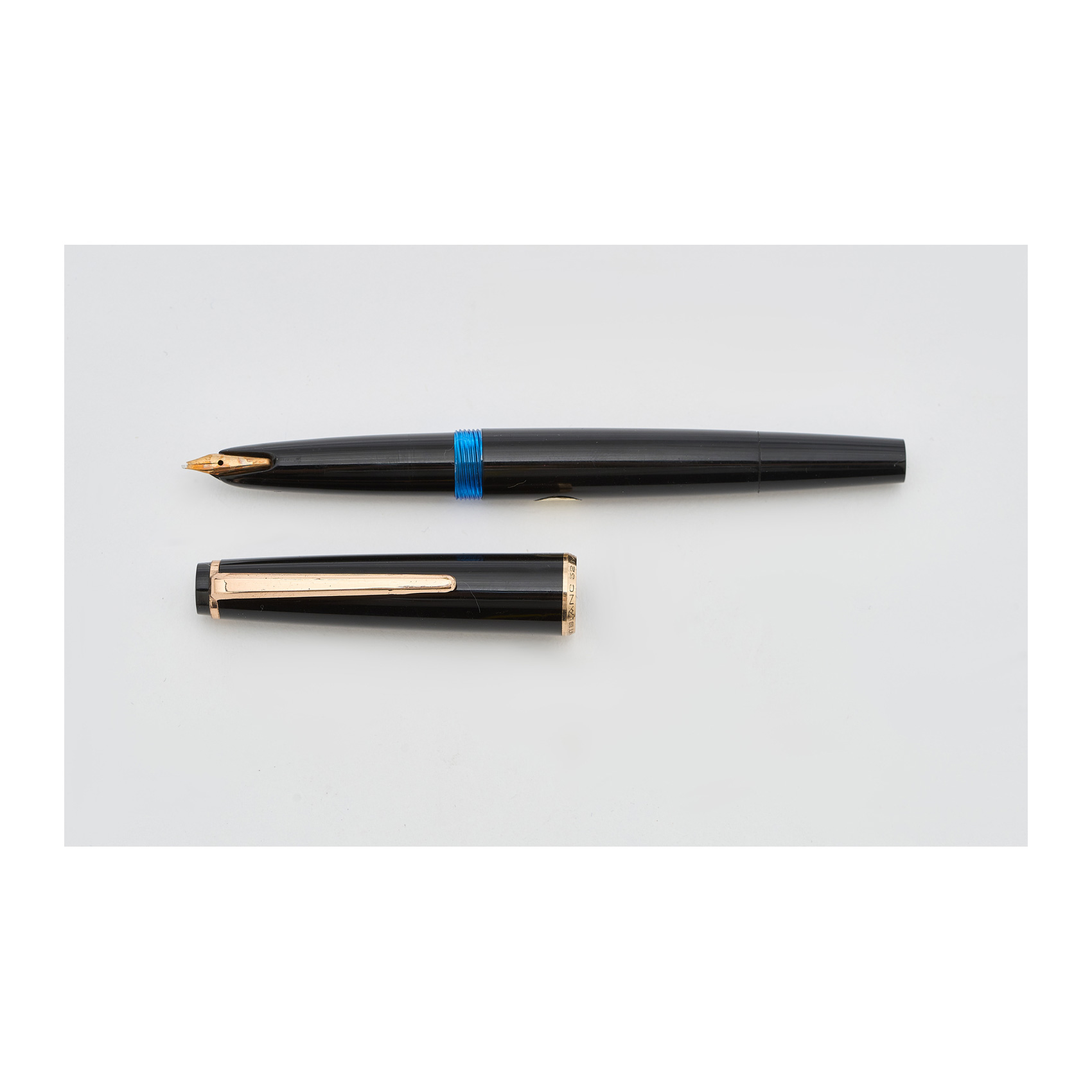 MONTBLANC «Nº 32». Estilográfica en resina negra con detalles en plaqué oro, c.1960. Sistema de carga por pistón.