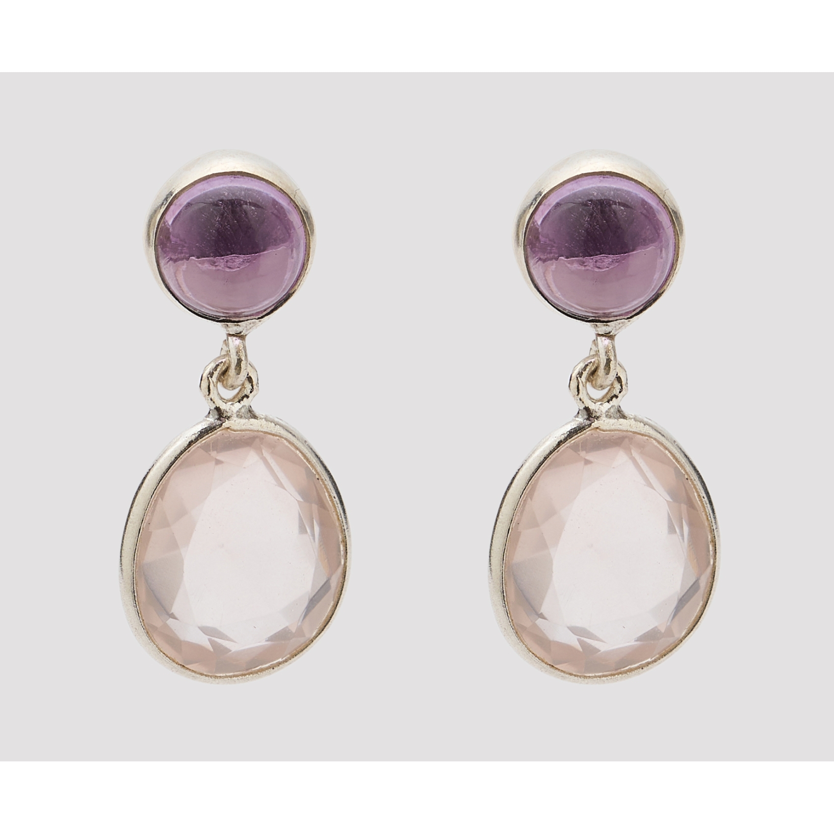 Pendientes en plata con cabujón de símil de amatista de 7 mm. y cuarzo rosa de 12 x 10 mm. Estimación:100 – 130€