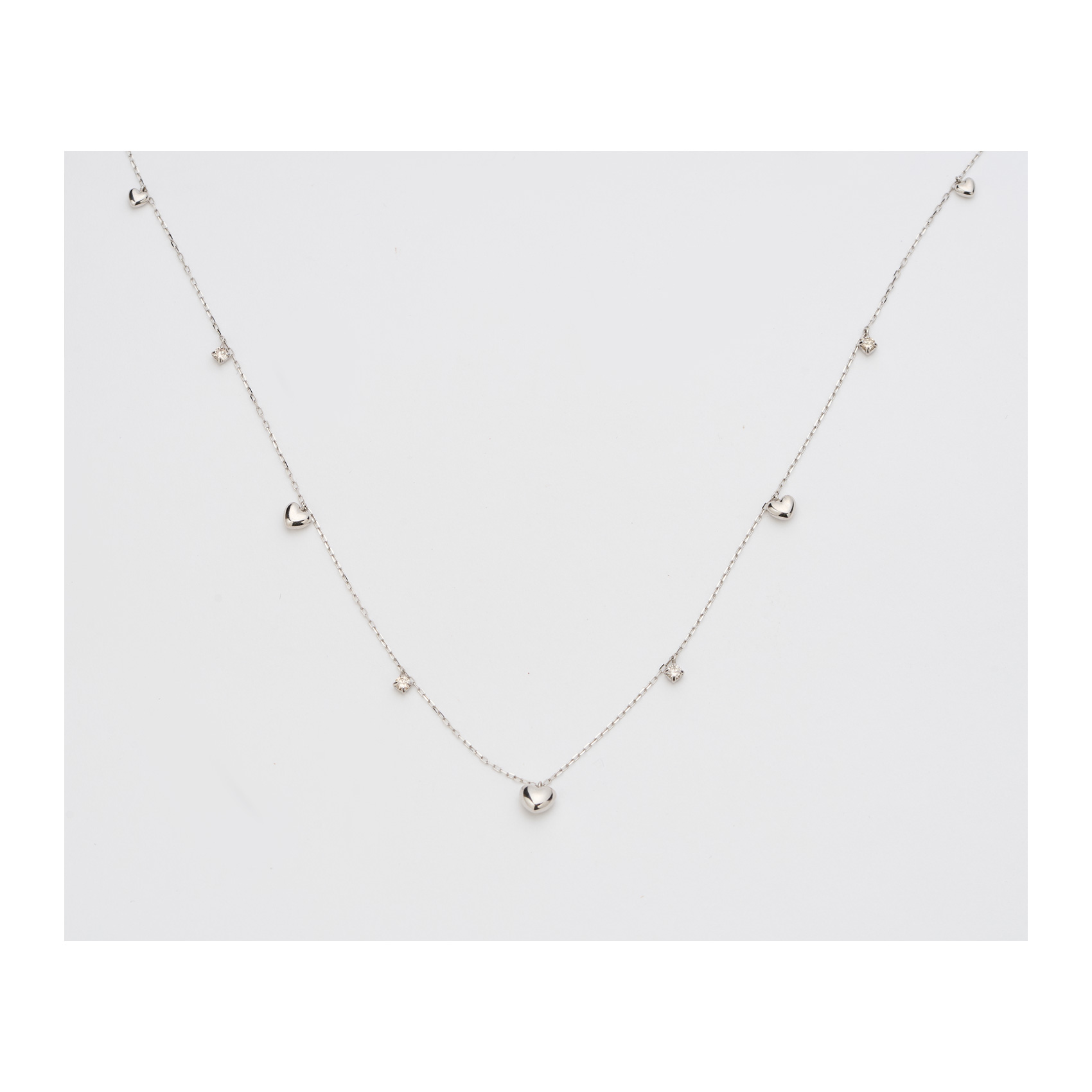 Gargantilla en oro blanco con corazones y diamantes talla brillante alternados.