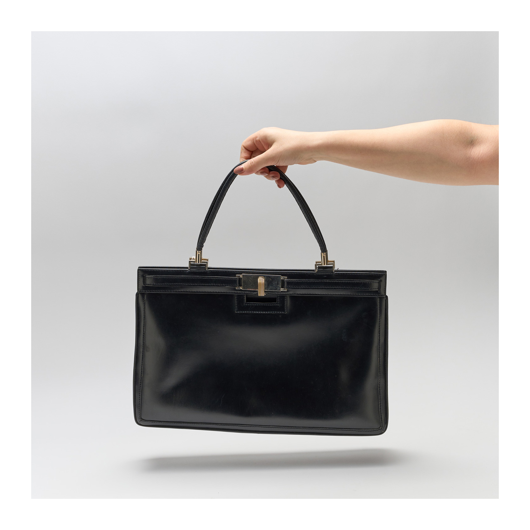 LOEWE. Bolso vintage en piel de tonalidad negra con cierre de pasador, c.1960. Interior compartimentado. En buen estado.