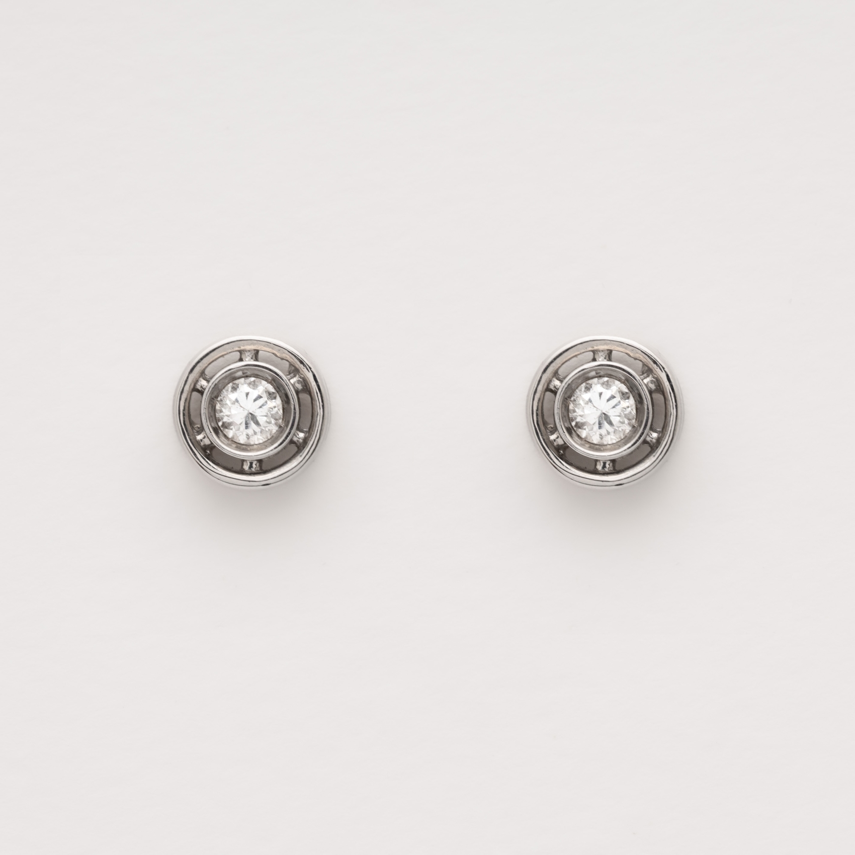 Pendientes de oro blanco con diamante central talla brillante engastado en chatón.
