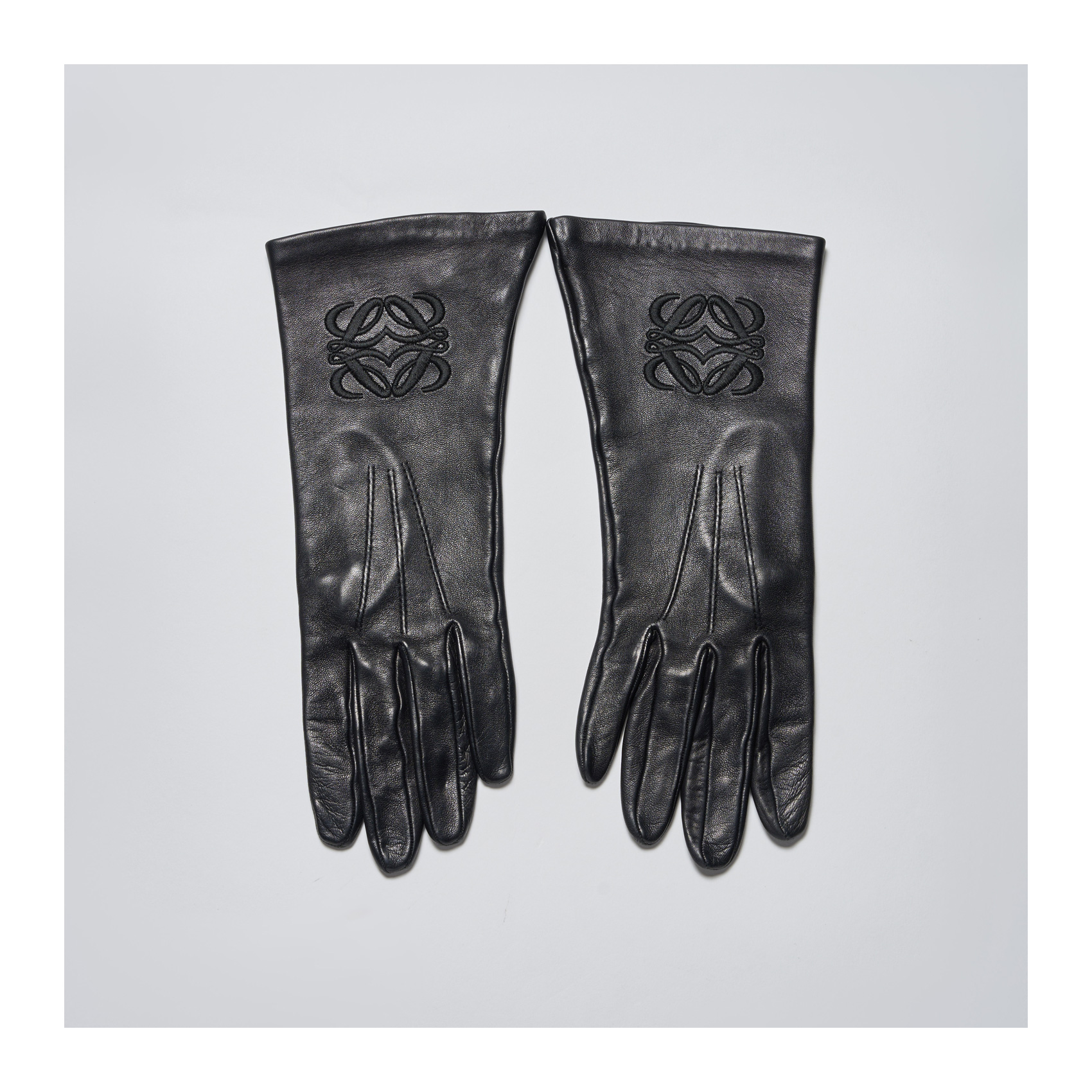 LOEWE. Pareja de guantes en piel negra con decoración de logotipo bordado en negro. Interior en seda. Nuevos a estrenar.